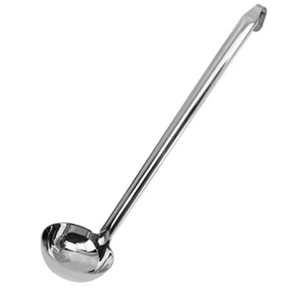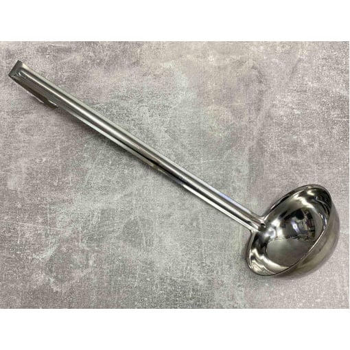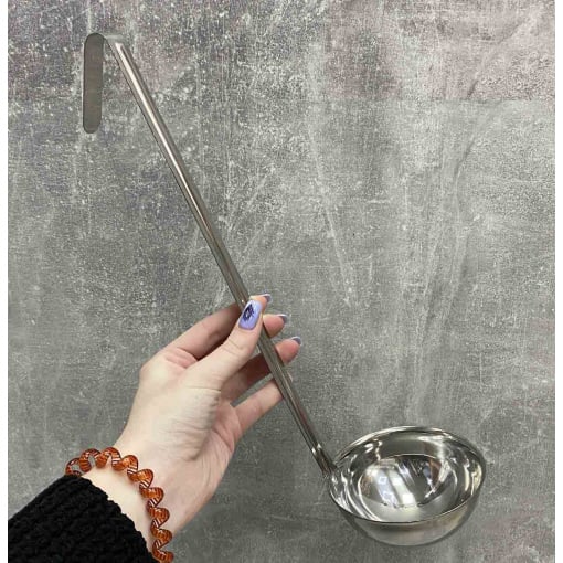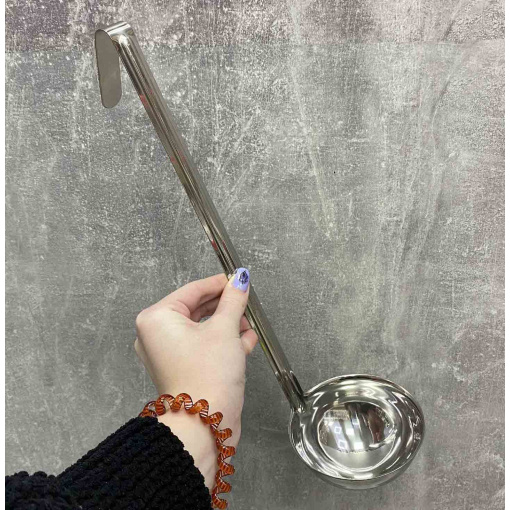 Половник - приспособление для разливания жидкой пищи. В каждом доме, столовой, ресторане имеется половник для разлива первых блюд, соусов, компотов, киселей и т.п. Предлагаемая модель выполнена из нержавеющей стали, экологичная, прочная и долговечная. Половник большого размера, имеет длинную ручку, удобную для подвешивания. Лаконичный стильный дизайн подойдет к интерьеру любой кухни.