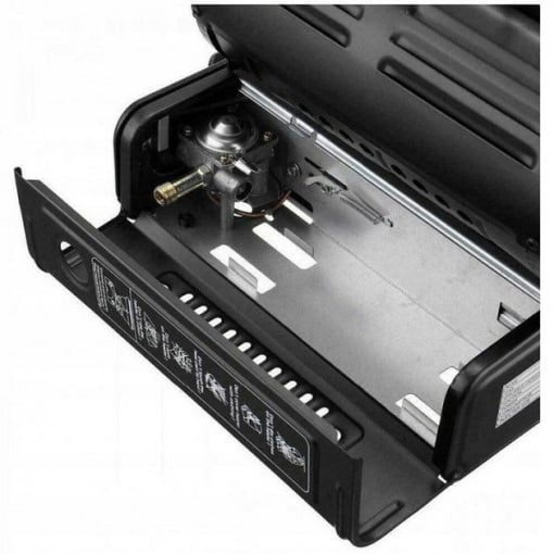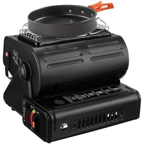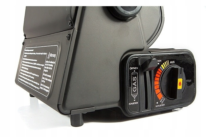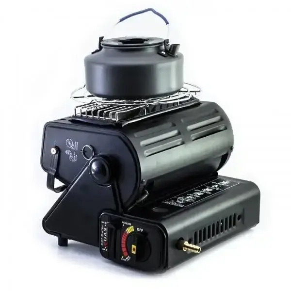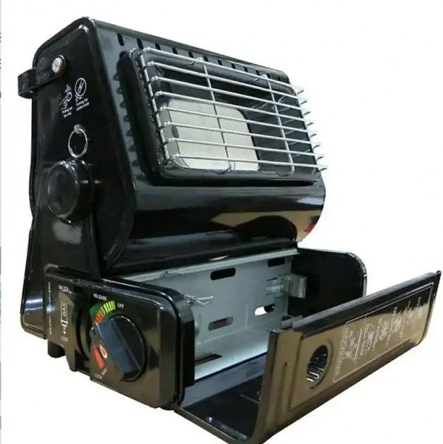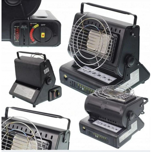 Основная функция этого прибора – отопление жилых помещений в капитальных и временных зданиях, охотничьих и более длинных домах, палатках, палатках, автомобилях, а также приготовление или разогрев пищи. Газовый отопитель с пезоподжигом и переходником под газовый баллон. Газовый обогреватель работает путём нагрева керамической пластины. Максимальное потребление составляет 90 г в час (1,3 кВт), поэтому тепловые обогреватели могут работать минимум 180 минут. Угол наклона изменяется, что позволяет нацелить тепло необходимым образом. Свисающее слева кольцо помогает зажечь туристический обогреватель на морозе (следует потянуть его на себя пальцем руки). Для переноски устройства есть удобная ручка сверху корпуса.