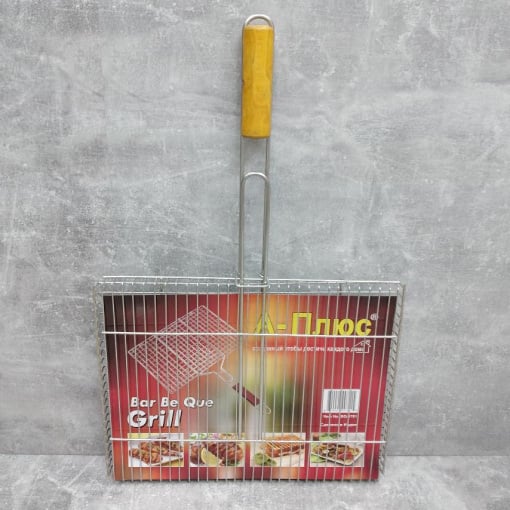 Решетка барбекю изготовлена из хромированной стали, не поддается коррозии, не выделяет вредных веществ и не меняет вкус и запах еды даже при высокой температуре, ручка деревянная.