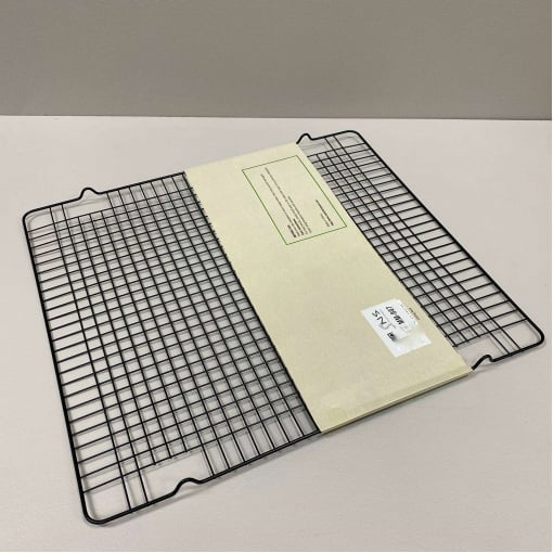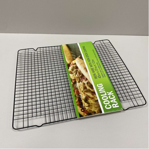 Решетка для выпечки, глазировки десертов и сушки 43*37*1,2 см SNS MM-907/4850 С помощью такого кондитерского инструмента, как сетка для глазирования, Вы можете равномерно распределить глазурь по поверхности и боковинам торта, пирожных, конфет или фруктов. Вся избыточная масса стечет вниз и может использоваться повторно. Главное поставьте решетку либо на лист, либо на пекарскую бумагу. Решетки можно использовать для запекания мяса, птицы и других продуктов, чтобы сразу стекал жир. Очень удобно и полезно. В обыденное время можно приспособить как подставку под горячее. Характеристика: Вид: Решетка Назначение: Для выпечки, глазирования десертов и сушки Материал: Металл Размер: 43*37*1,2 см Форма: Прямоугольная Цвет: Черный Антипригарное покрытие: Есть