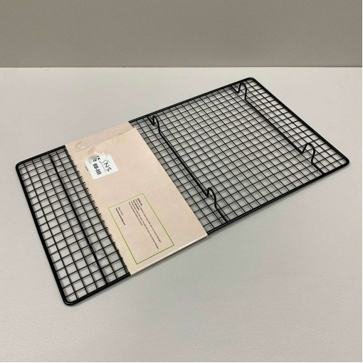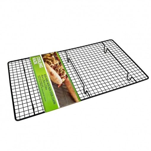 Решетка для выпечки, глазировки десертов и сушки 46*26*3 см SNS MM-908/4851 С помощью такого кондитерского инструмента, как сетка для глазирования, Вы можете равномерно распределить глазурь по поверхности и боковинам торта, пирожных, конфет или фруктов. Вся избыточная масса стечет вниз и может быть использована повторно. Главное поставьте решетку либо на лист, либо на пекарскую бумагу. Решетки можно использовать для запекания мяса, птицы и других продуктов, чтобы сразу стекал жир. Очень удобно и полезно. В обыденное время можно приспособить как подставку под горячее. Характеристика: Вид: Решетка Назначение: Для выпечки, глазирования десертов и сушки Материал: Металл Размер: 46*26*3 см Форма: Прямоугольная Цвет: Черный Антипригарное покрытие: Есть