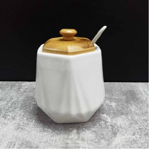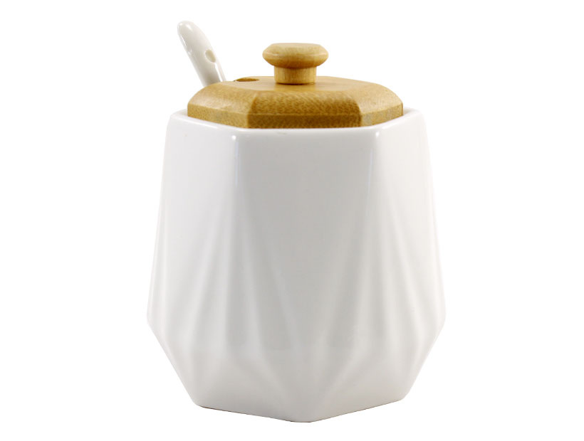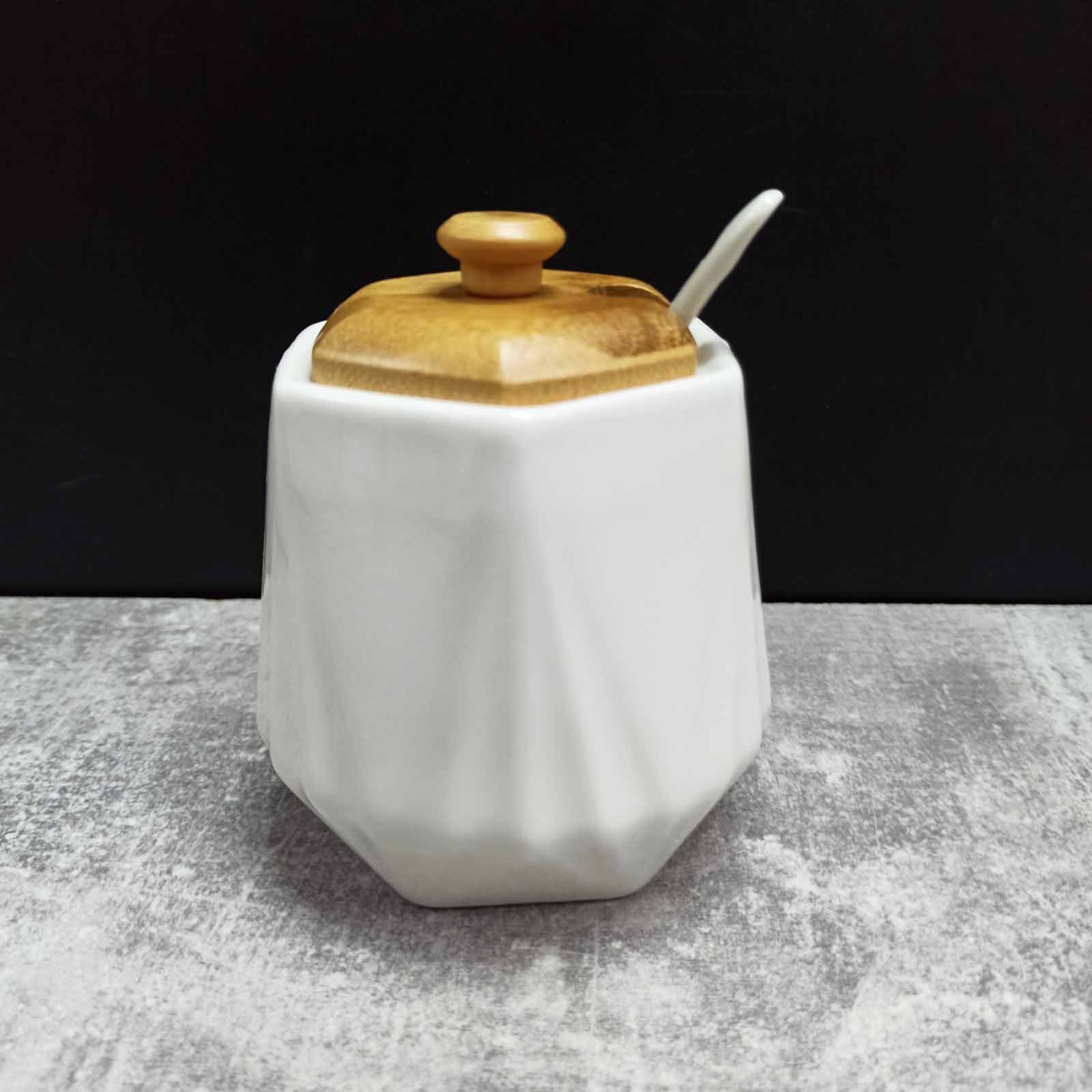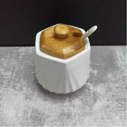 Сахарница с ложкой и деревянной крышкой 330 мл PJ03346-1