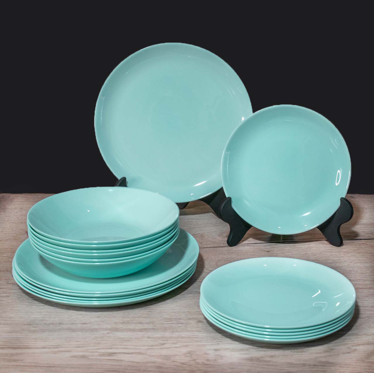 Сервиз столовый 18 пр Luminarc Diwali Light Turquoise P2963 Характеристика: В набор входит: Тарелка обеденная 6 шт. (25 см); Тарелка глубокая 6 шт. (20 см); Тарелка десертная 6 шт. (19 см); Материал: закалённое стекло; Можно использовать в СВЧ: да; Можно мыть в посудомоечной машине: да; Производитель: Luminarc, Франция. Особенности: -французское качество материалов, дизайнов и декоров; -устойчивость к повреждениям при ежедневном использовании; -изготовлено из закаленного стекла – самого гигиеничного материала; -можно использовать посуду в микроволновой печи; -можно использовать в посудомоечной машине; -полное соблюдение норм и стандартов безопасности и экологичности для потребителя.