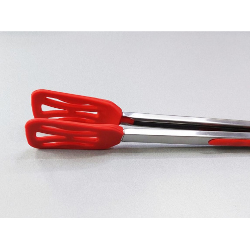 Силиконовые кухонные щипцы с прорезями 25*5,5 см A-PLUS 1999 красные Силиконовые кухонные щипцы идеально подойдут для жарки мяса, вермишели или овощей. Удобная эргономичная ручка имеет противоскользящее покрытие, что очень удобно при приготовлении. Щипцы кухонные оснащены замком-крючком, на котором удобно хранить их в подвешенном состоянии. Их можно зафиксировать в сложенном виде. Для этого сложите их вместе и потяните наверх кольцо в основании. Чтобы разблокировать щипцы, опустите кольцо вниз. Покрытие рабочей поверхности с отверстиями для стекания излишнего масла и сока. Кулинарными щипцами очень удобно накладывать пасту, салаты, сервировать стейки или рыбные блюда. Благодаря широкому хвату ваши угощения всегда останутся в первозданном виде и не потеряют своей формы при перекладывании на тарелку. Характеристика: Длинна: 25 см Размер рабочей части: 9*5,5см Материал: силикон / нержавеющая сталь Особенности кухонных аксессуаров оснащены петелькой для подвешивания; силиконовое покрытие Цвет: Красный