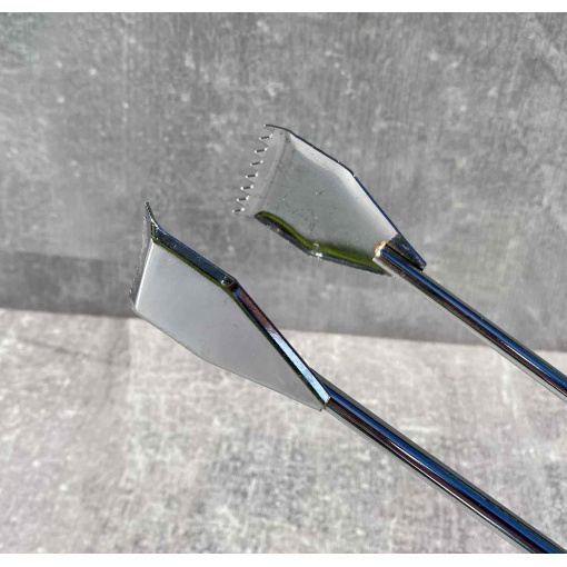 Изготовленые из высококачественной полированной нержавеющей стали. Незаменимый атрибут при использовании гриля. Поможет справиться не только с приготовление на гриле, но и с его очисткой после.
