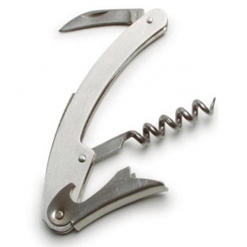 Штопор классический инструмент для элегантного и аккуратного откупоривания винных бутылок. Двухступенчатый ключ. Отличие этой компактной модели - наличие маленького встроенного ножика для срезания капсулы, этикетки или пробки. Размер в сложенном виде - 12см. Полностью изготовлен из нержавеющей стали, безопасного и гигиеничного материала. Не окрашивается и не впитывает запахи.
