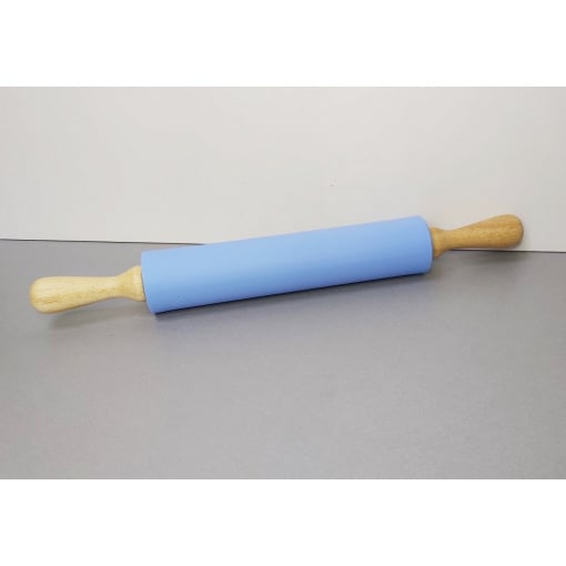 Силиконовая скалка 43 х 5.5 см c деревянными ручками Голубая Stenson 2993