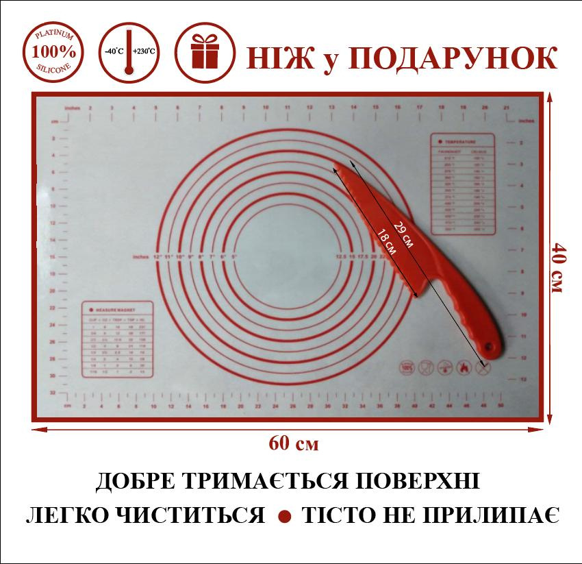 Силиконовый коврик для раскатки теста и выпечки Ytech 2190 60 х 40 см Красный