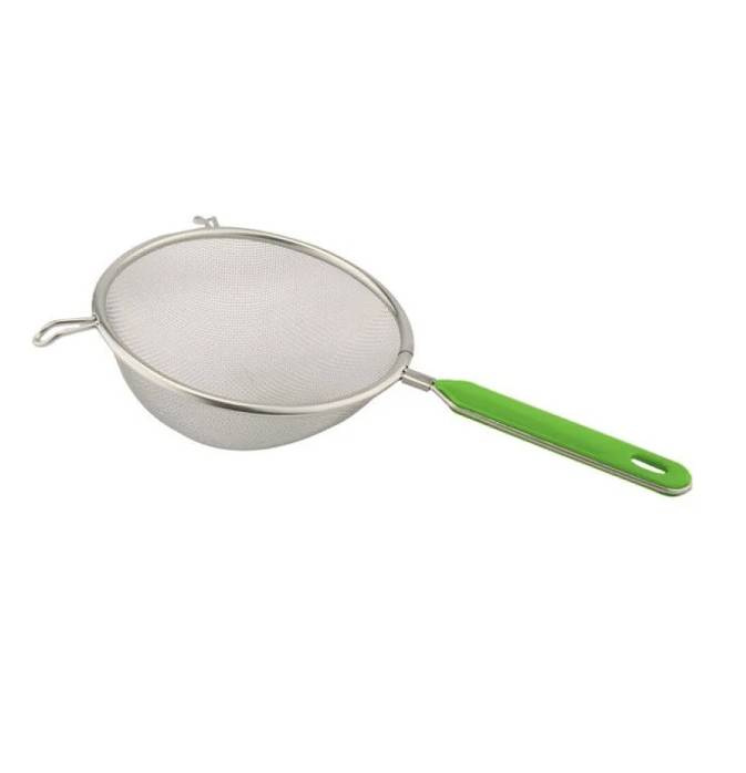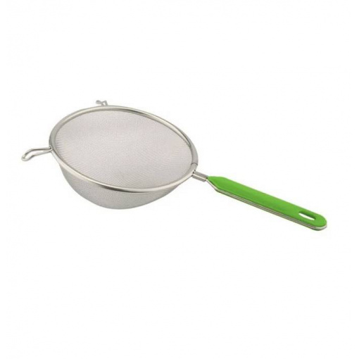 Сито с нержавеющей стали с зеленой ручкой Maestro MR-1684-20 Сито Maestro MR-1684-20 диаметром 20 см станет отличным помощником на кухне. Сито изготовлено из нержавеющей стали, ручка пластиковая. С помощью маленькой петельки Вы без усилий разместите сито в удобном для Вас месте. Характеристики: Вид: Сито Материал: Нержавеющая сталь Диаметр: 20 см Цвет: Стальной с зеленым Форма: Круглая Производитель: Maestro