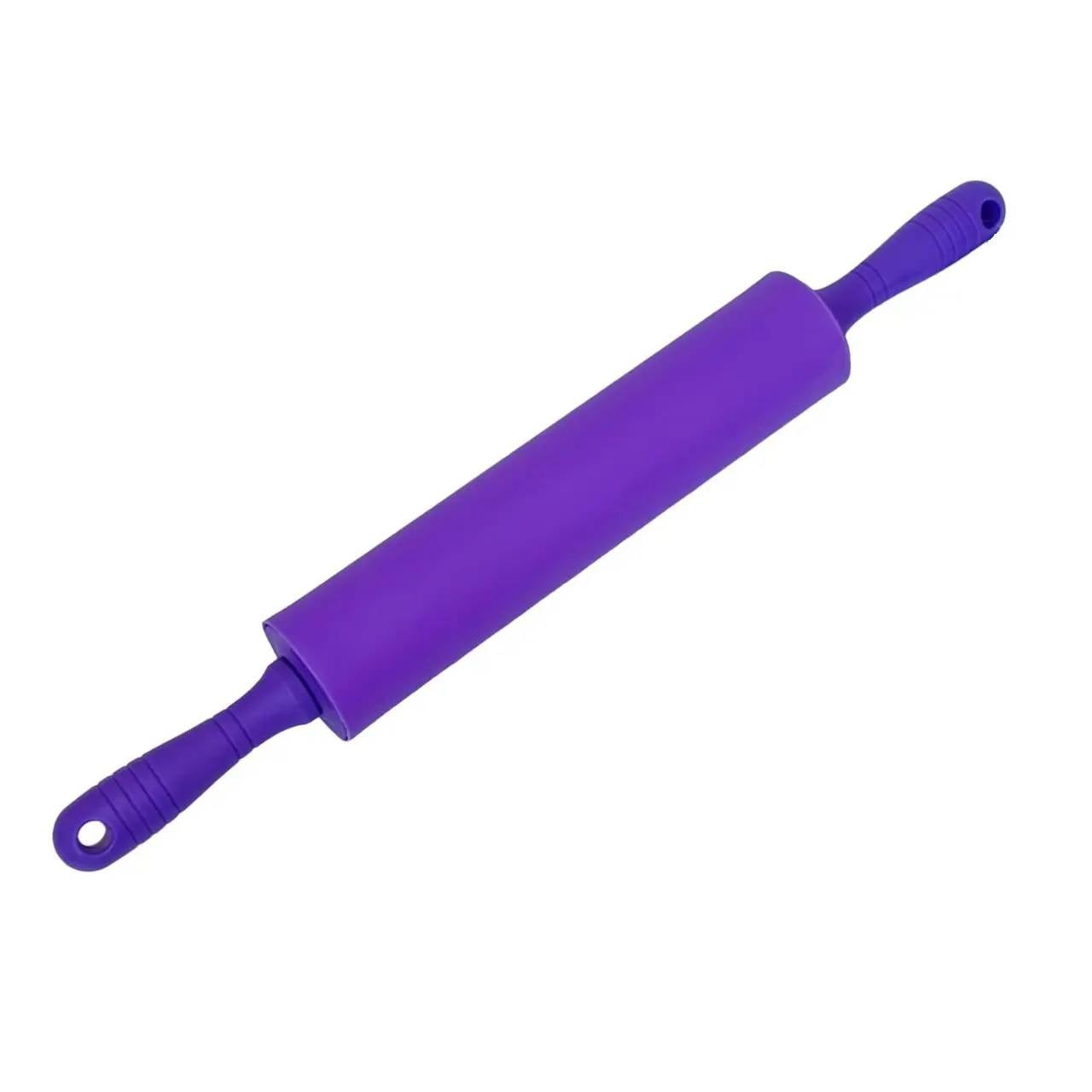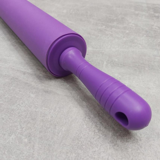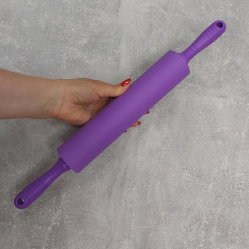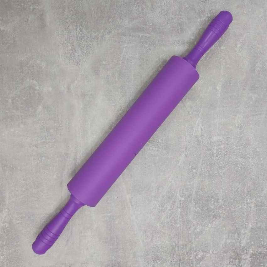 Классическая скалка 45 см фиолетовая с силиконовым покрытием. Длина рабочей поверхности скалки 25 см, общая длина 45 см. Прекрасно подходит для раскатки очень тонкого теста для лепешки или пиццы и, при этом, тесто не нужно посыпать мукой или смазывать растительным маслом. К силиконовой утке тесто не прилипнет, а эргономичные пластиковые ручки обеспечат максимальный комфорт при ее использовании.