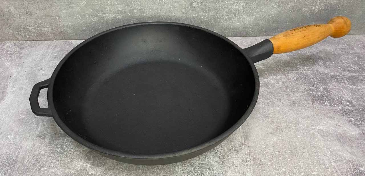 Подробные характеристики Сковорода чугунная S&T 24*6 см с деревянной ручкой Т305Ук.