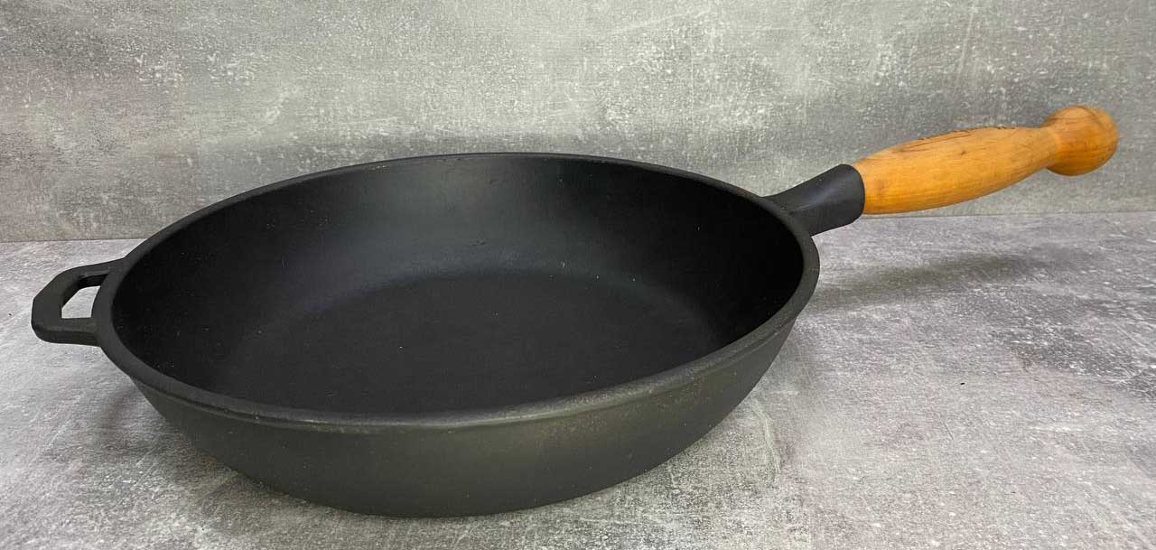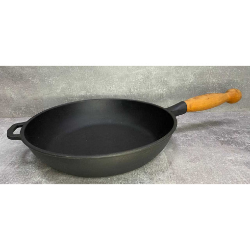 Сковорода чугунная 24*6 см с деревянной ручкой Т305Ук