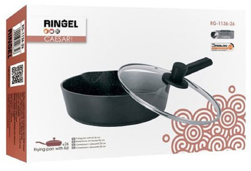 Подробные характеристики Сковорода Ringel Caesar глубокая с крышкой 26 см (RG-1136-26).