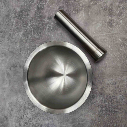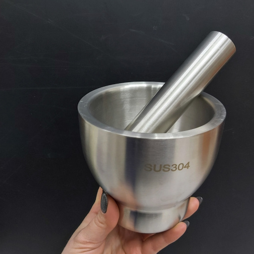 Стальная ступка пригодится для каждой хозяйки, которая любит радовать своих близких натуральной и вкусной едой. Специальная крышка позволяет удобно и без просыпания измельчит любые специи.Ступка предназначена для растирания различных специй, трав и приготовления ароматных соусов и заправок. Не впитывает запахи и поэтому все специи приготовленные в ступке сохранят свои ароматы для ваших блюд и не смешаются с ароматами ранее приготовленных в ступке приправ. Ступка легко моется, она является долговечной и красивой.