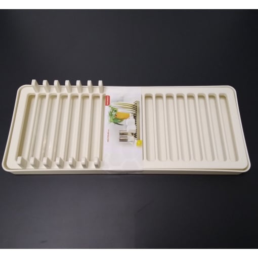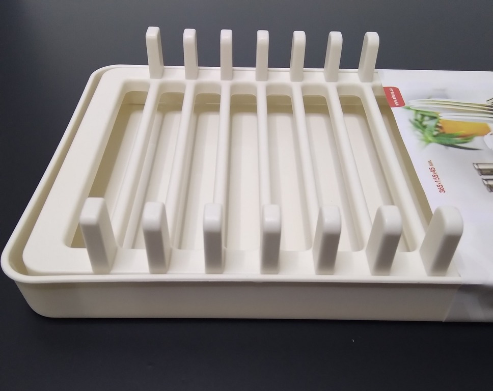 Предмет современной неотъемлемой кухонной части предназначенный для стекания воды с вымытой посуды и естественной сушки. Сушилка для посуды изготовлена из безопасного пластика. Конструктивно предусмотрена возможность установить любые столовые принадлежности.
