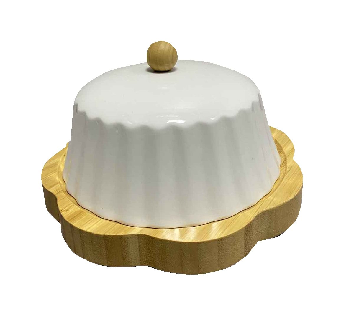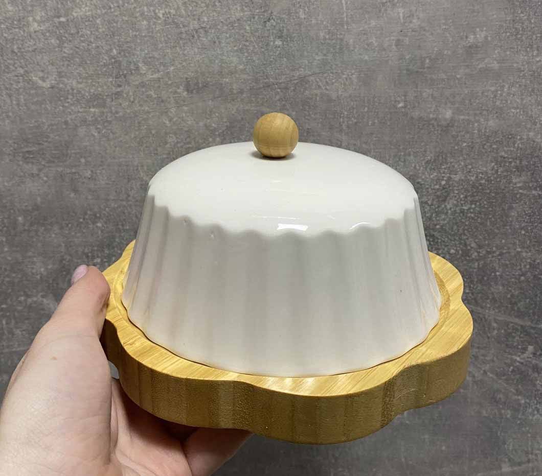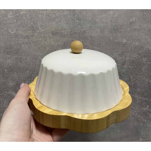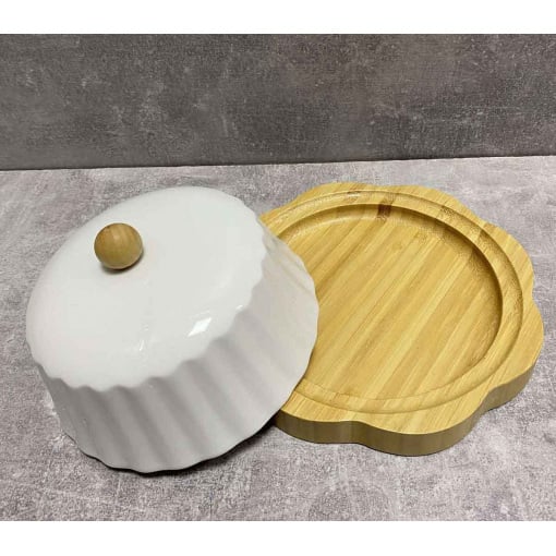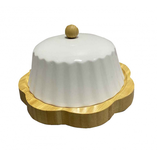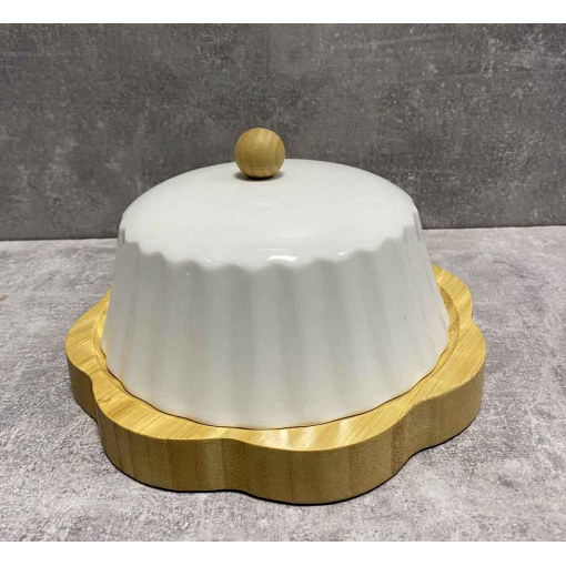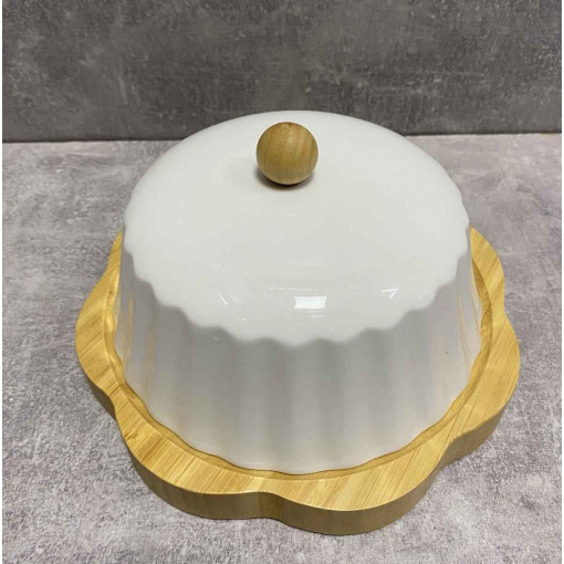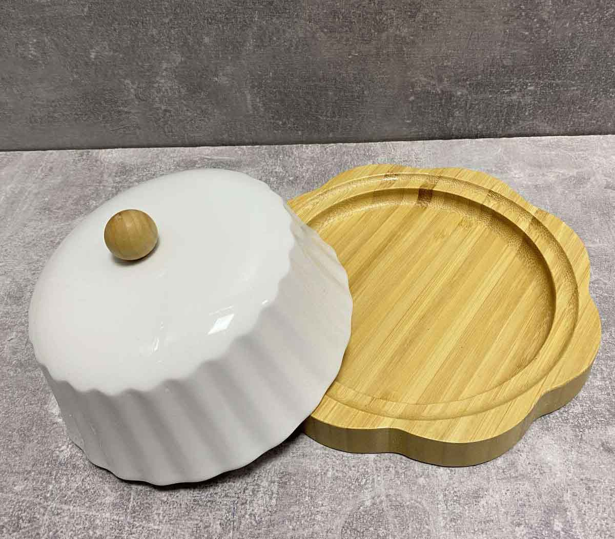 Тарелка бамбуковая с фарфоровой крышкой для пироженных, сыра, масла Bona Di 289-392