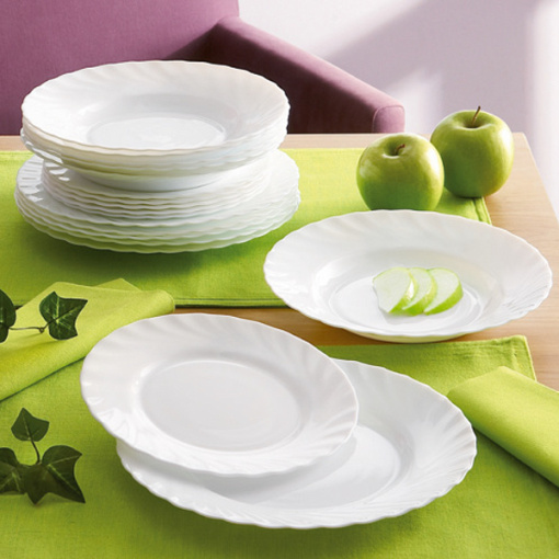 Главной отличительной особенностью торговой марки Luminarc является качество и ударопрочность. С каждым годом компания совершенствует технологии и улучшает качество своего стекла. У них получилось создать такое высокопрочное стекло, которому не страшны ни удары, ни перепады температур. Так же к плюсам данного материала можно отнести абсолютно гладкую поверхность, препятствующую проникновению бактерий и посторонних запахов в посуду. Можно мыть в посудомоечной машине. Посуда Luminarc разработана для постоянного использования, рисунок не теряет яркость, поверхность отлично держит тепло. Вся столовая посуда Luminarc проходит дополнительный процесс упрочнения и в 2-3 раза устойчивее к повреждениям. К тому же обычно при сильном ударе посуда распадается на множество неострых кусочков, что практически исключает возможность пореза. Посуда Luminarc становится более прочной за счет процесса закаливания — резкое охлаждение разогретого до высокой температуры изделия. Тарелка Luminarc Trianon десертная круглая d-19 см 4124 (3647 61258) LUM Характеристики: Материал: ударопрочное стекло Количество предметов: 1 шт Цвет: Белый Размер : 19 см Форма: круглая Особенности: можно использовать в посудомоечной машине; можно использовать в СВЧ (выдерживает перепады температуры до 130°С) французское качество материалов, дизайнов и декоров;