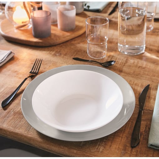 Главной отличительной особенностью торговой марки Luminarc является качество и ударопрочность. С каждым годом компания совершенствует технологии и улучшает качество своего стекла. У них получилось создать такое высокопрочное стекло, которому не страшны ни удары, ни перепады температур. Так же к плюсам данного материала можно отнести абсолютно гладкую поверхность, препятствующую проникновению бактерий и посторонних запахов в посуду. Можно мыть в посудомоечной машине. Посуда Luminarc разработана для постоянного использования, рисунок не теряет яркость, поверхность отлично держит тепло. Вся столовая посуда Luminarc проходит дополнительный процесс упрочнения и в 2-3 раза устойчивее к повреждениям. К тому же обычно при сильном ударе посуда распадается на множество неострых кусочков, что практически исключает возможность пореза. Посуда Luminarc становится более прочной за счет процесса закаливания — резкое охлаждение разогретого до высокой температуры изделия. Тарелка обеденная круглая 25 см Luminarc Diwali Granit 0870P LUM