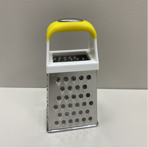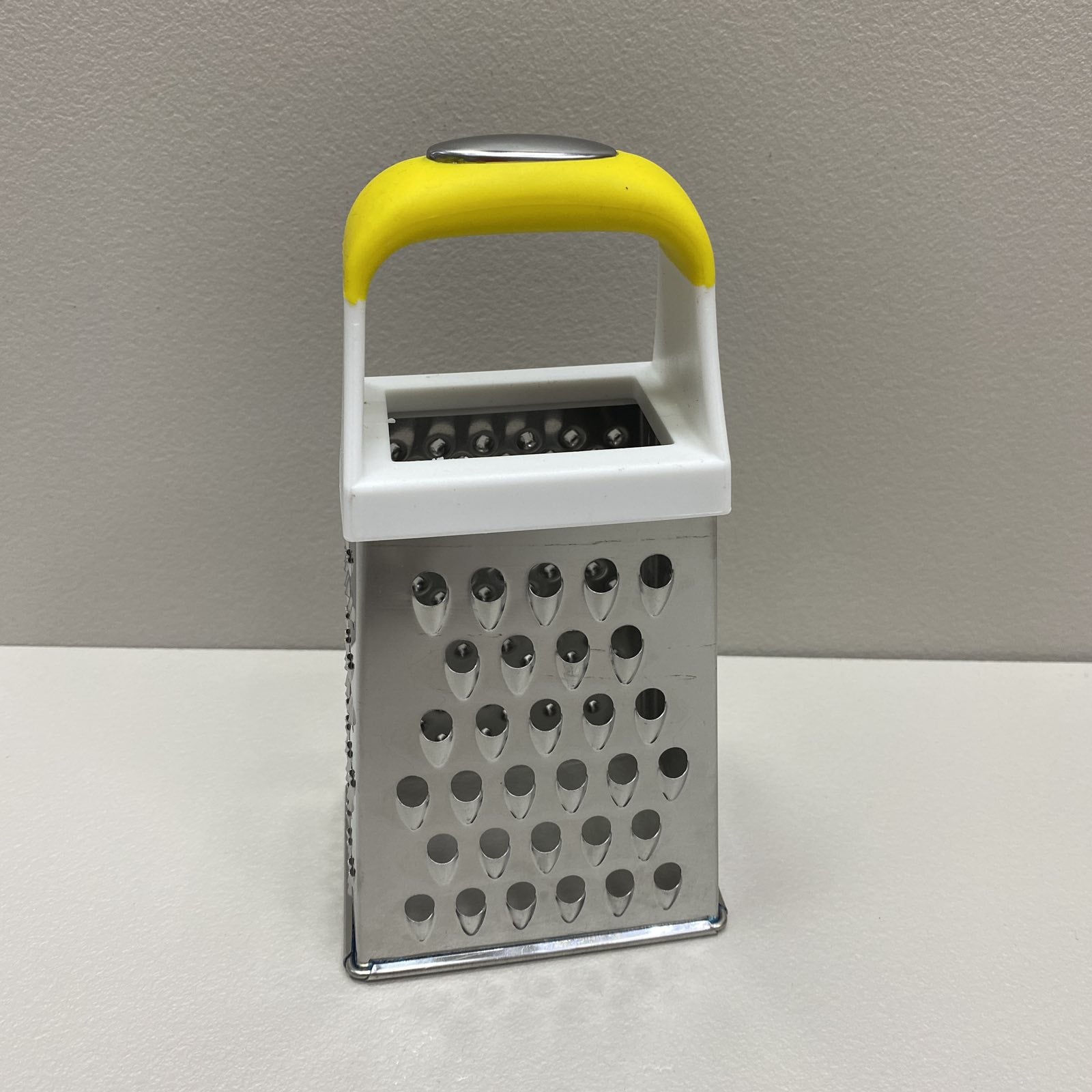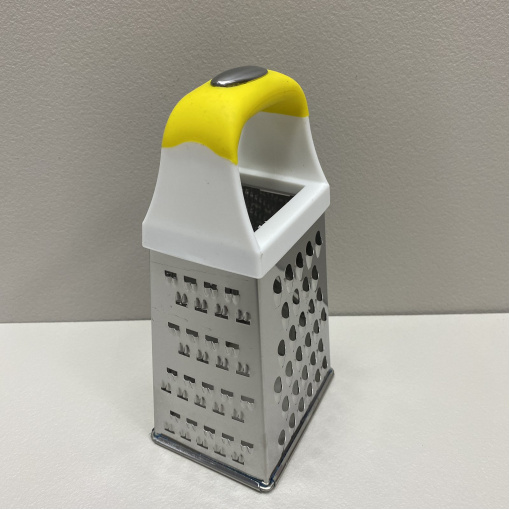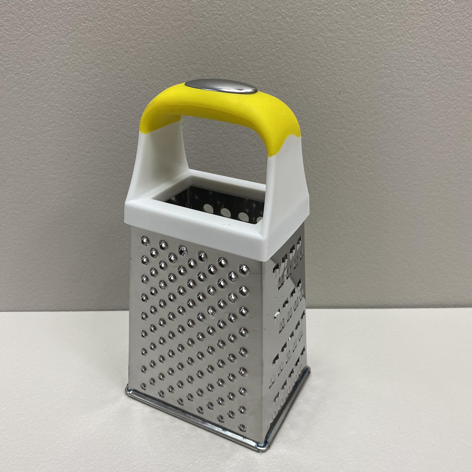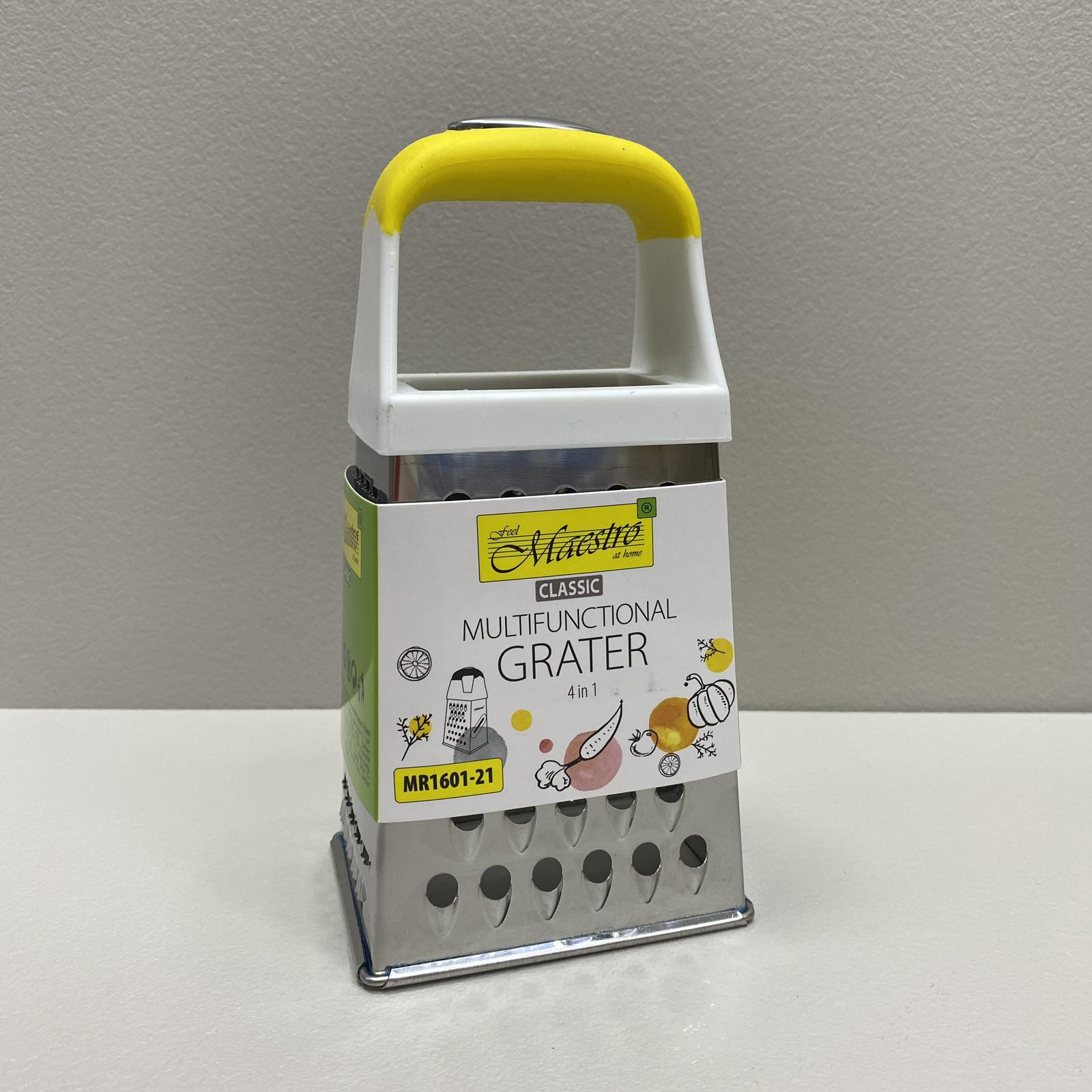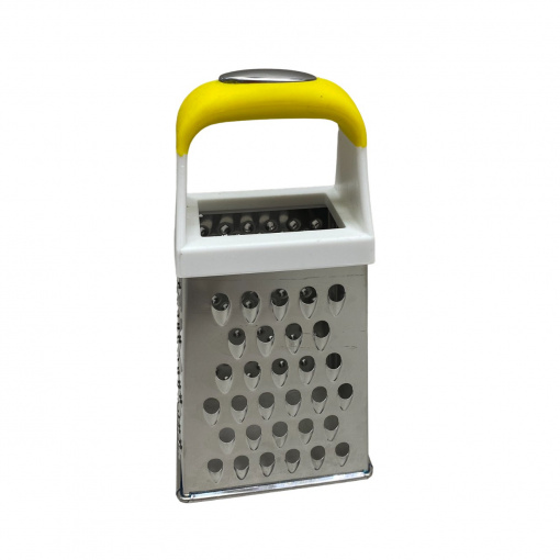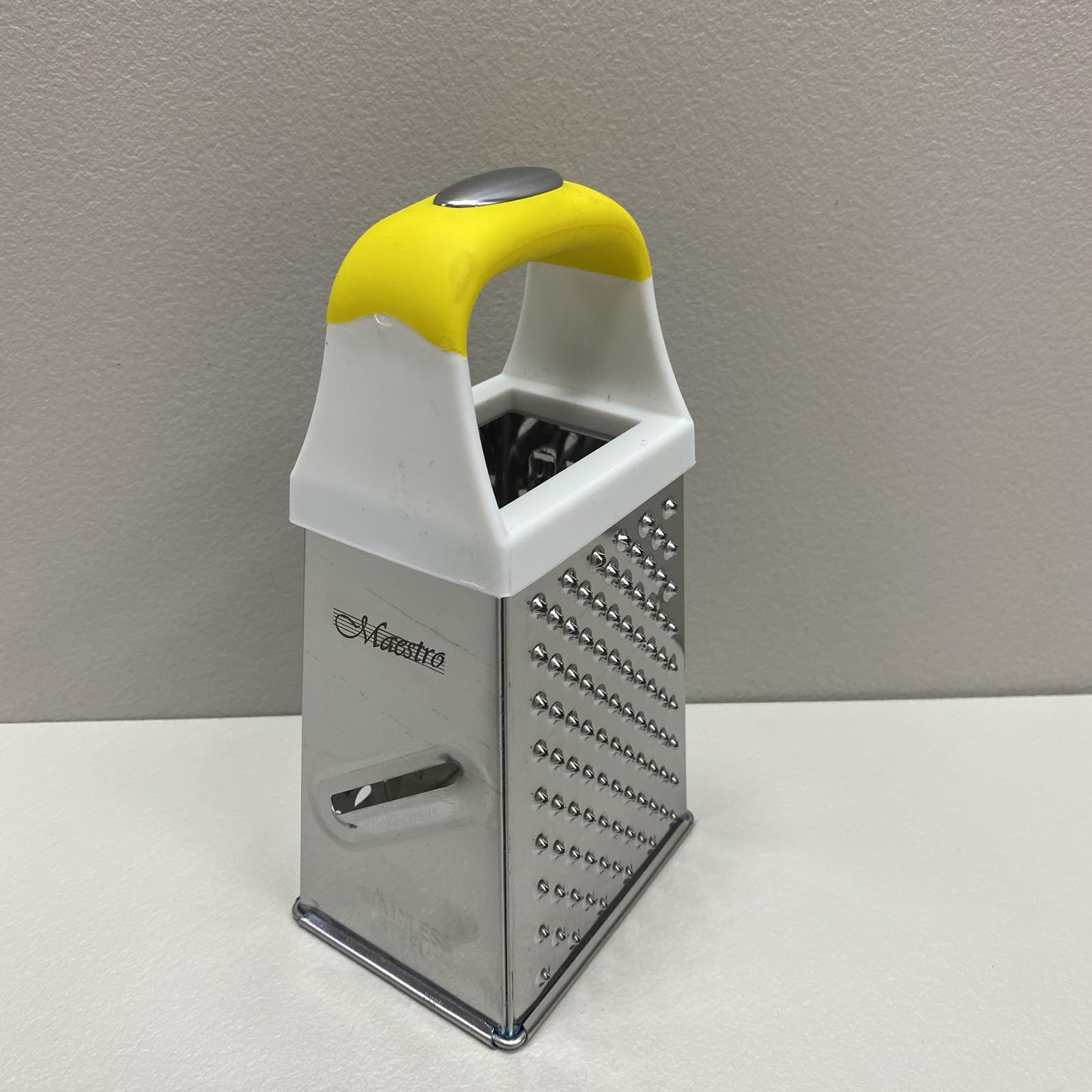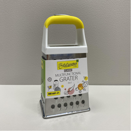 Терка из нержавеющей стали пластиковой ручкой белая с желтым Maestro MR-1601-21 Характеристика: Вид: Терка Материал: Нержавеющая сталь Материал ручки: Пластик/силикон Высота: 17,3 см Размер: 8*5,8 см