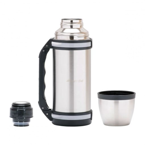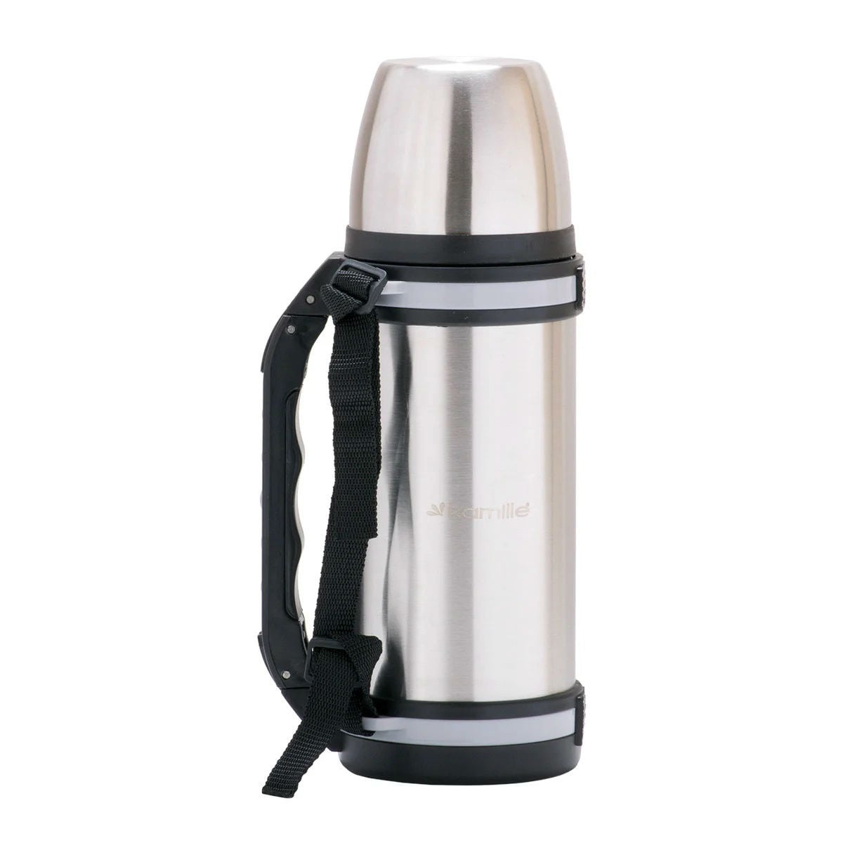 Термос Kamille обладает высоким качеством, надежностью, компактными размерами и эстетичным дизайном. Такой термос станет незаменимым в машине, на отдыхе или в путешествии. Термос Kamille 1500 мл из нержавеющей стали КМ-2091 Характеристики: - Материал корпуса: нержавеющая сталь. - Материал колбы: нержавеющая сталь. - Материал крышки: нержавеющая сталь и ПП. - Объем: 1500 мл. - Высота: 30,5 см. - Съемный клапан: есть. - Ручка: есть. - Цвет: серый с чёрными вставками. - Упаковка: картонная коробка 12,5 х 12,5 х 32 см. - Время сохранения температуры: 6-8 часов. Особенности: - Эксклюзивный дизайн - съемный клапан: есть - высокопрочная конструкция - удобный и прочный внутренний клапан - 100% герметичен