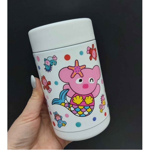 Любая мама хочет, чтобы ее ребенок был веселым, активным, здоровым. Еще хорошо бы - послушным и не балованным, но тут уж многое зависит от индивидуальности характера малыша. И каждая мама хочет быть уверенной, что ее кроха хорошо покушает и без ее присмотра. У детей нынче жизнь насыщенная - детский садик, первые классы, спортивные кружки и дома творчества. И на таких занятиях мамы чаще всего не присутствуют. И не могут с уверенностью сказать, что в перерывах ребенок не есть что-то вредное для его здоровья. Но мамы могут и подстраховаться - приготовить полезное и вкусное блюдо дома, сложить в удобный термос, положить обед в детскую сумку и отправить на кружок. Все! У маленького человека есть с собой перекус для перерыва. Термос подходит для пищи и жидкостей. Можно положить и салатик, и зерновую ароматную кашу с подливкой. Порция получится достаточной, чтобы заглушить чувство голода. Свежесть, запах и температура продуктов может сохраняться до 6 часов. Крышка плотно прикручивается, и пища не попадет на подкладку сумки. У крышки удобная форма - никаких проблем с закрыванием-открыванием. Ширина горла достаточно большая, чтобы было удобно и накладывать пищу, и есть ее. И мыть после того, как поели.