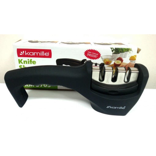 Точилка для ножей Kamille KM-5705 Точилка для ножей Kamille — прекрасный помощник на кухне. Грубая заточка, подходит для тупых ножей. Тонкая заточка необходима для устранения неровностей и полировки лезвия ножа. После заточки рекомендуется промыть лезвия и вытереть сухой тряпкой или салфеткой.Точило можно чистить необразивной щеткой. Характеристика: Вид: Точилка Материал: Нержавеющая сталь, пластик, силикон Размер: 20,5 х 6 х 6,5 см