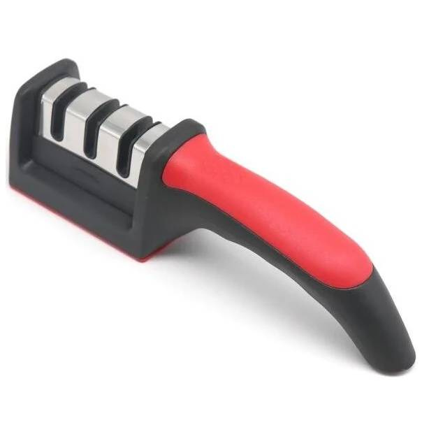Точило для ножей – прекрасный помощник на кухне. Такая точила очень проста и удобна в использовании – Вы за считанные минуты сможете заточить нож, при этом не прикладывая особых усилий. Три слота для заточки ножей: для грубой заточки, с грубой керамикой и для финальной заточки.