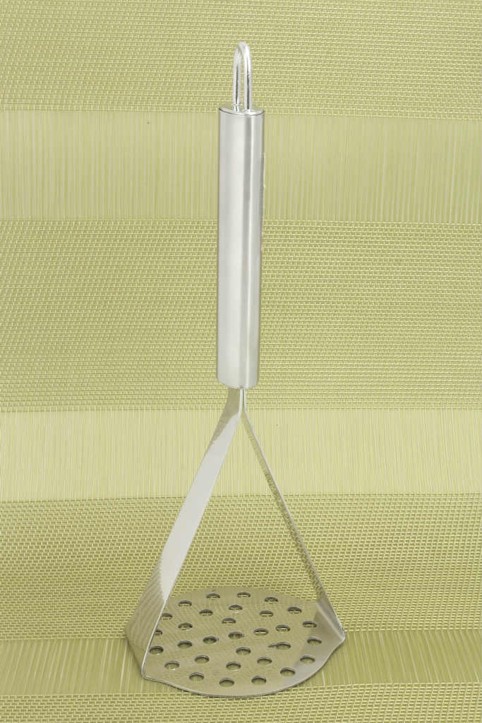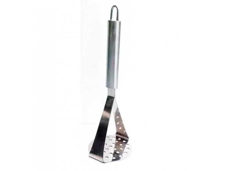 Толкушка (картофелемялка) - это кухонное приспособление для получения пюре из варёных овощей. Предлагаемая модель изготовлена из нержавеющей стали, которая широко используется в пищевой промышленности. Такая посуда отличается долговечностью и стойкостью к химическим реакциям, кислотам и щёлочам. При этом посуда, изготовленная из нержавеющей стали, имеет отличный вид, не требует сложного ухода и моется в посудомоечных машинах.