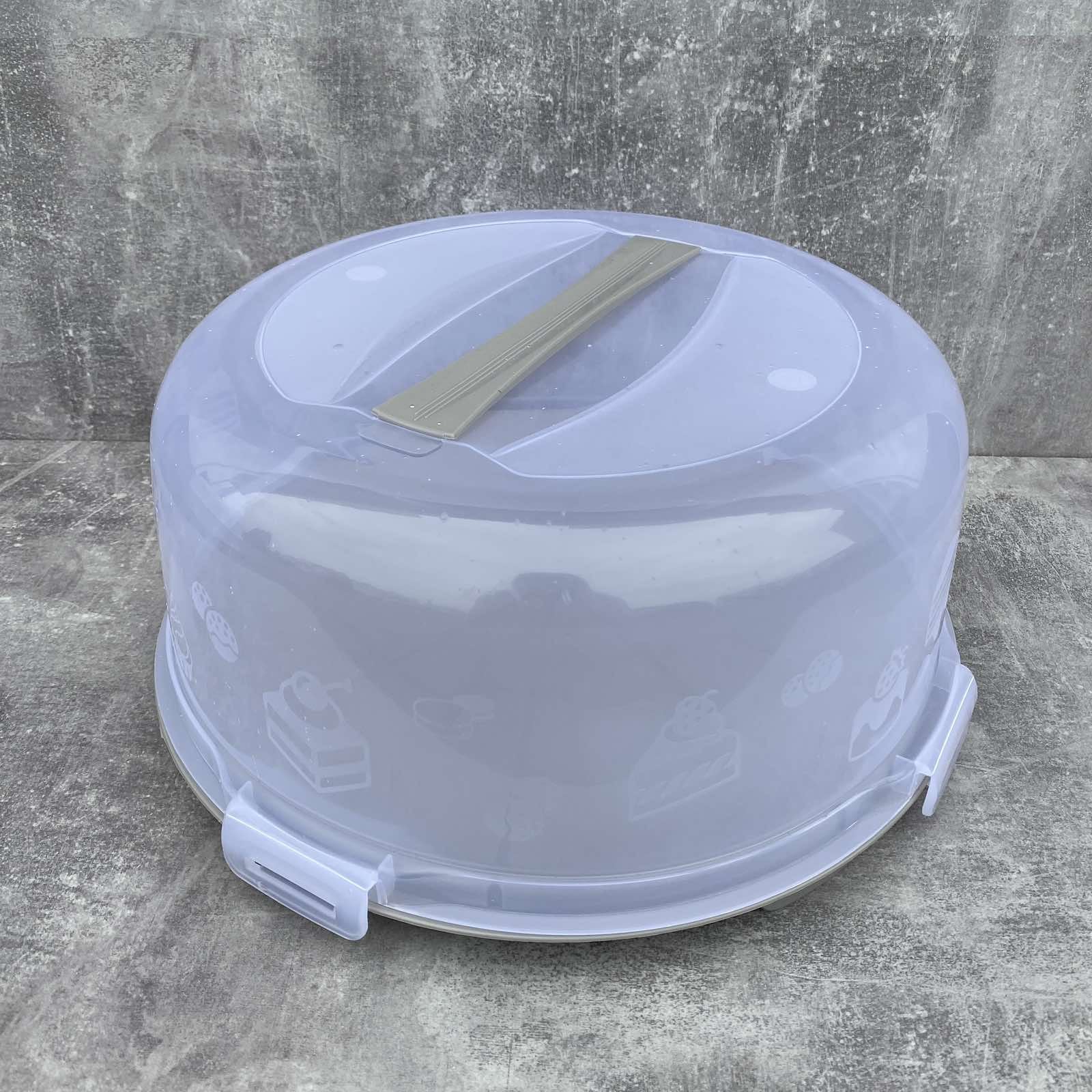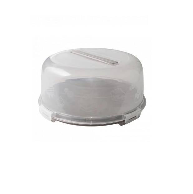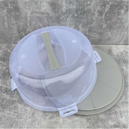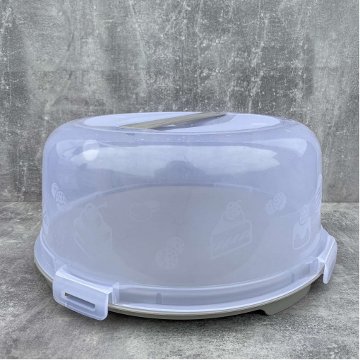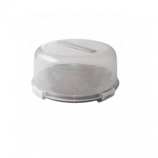 Тортовница-контейнер с крышкой предназначена для переноски торта, пирожных или других продуктов, длительного хранения в холодильнике, а также хорошей подачи на сервированный стол. Большая емкость и высокая крышка позволят поместить в контейнер от маленького пирога до большого торта. Тортовница изготовлена ​​из высококачественного пищевого пластика. Не окисляется, не окрашивается и не впитывает запахи. Блюдо-поддон имеет нескользящую внутреннюю поверхность, что исключает скольжение продукта во время переноса. Высокая крышка с ручкой плотно прилегает к поддону, защищая от обветривания и предотвращая попадание внутрь емкости внешних запахов.