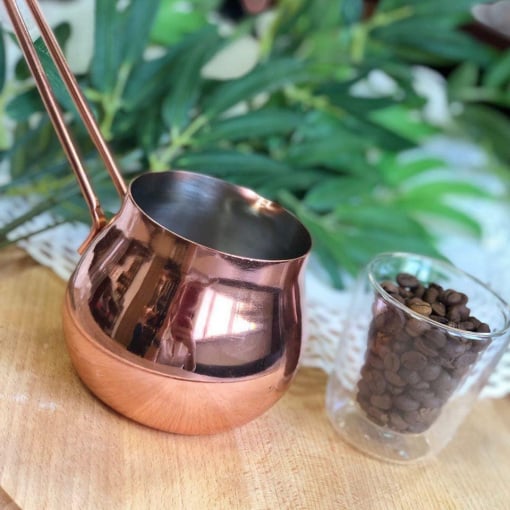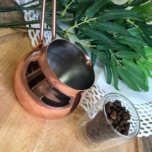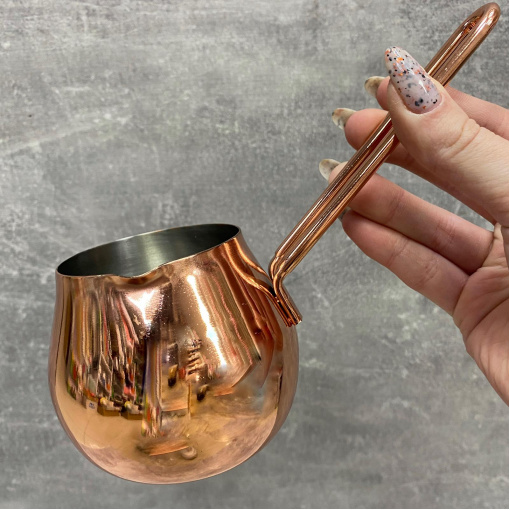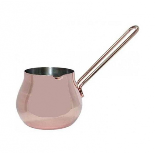Рады Вам представить – стальную турку Медная классика! Выполнена из первоклассного материала хорошего качества в классической для этого изделия форме. Ни для кого не секрет, что для правильного подбора турки сначала нужно обратить внимание на ее форму. Она должна быть похожа на кувшин, а узкая шейка является обязательным условием. Благодаря ему поднимающаяся пенка, которая во время процесса приготовления накапливается в нем и выполняет функцию пробки. Дно сосуда шире горловины, благодаря этому вода постепенно и равномерно прогревается, впитывая невероятный вкус молотых зерен. Именно из этой кофе будет наполнена ярким и неповторимым ароматом!