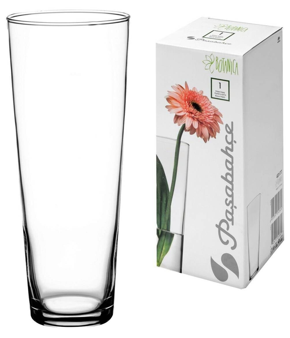 Подробные характеристики Ваза стеклянная Pasabahce Флора h-26 см цилиндр-конус 43177.