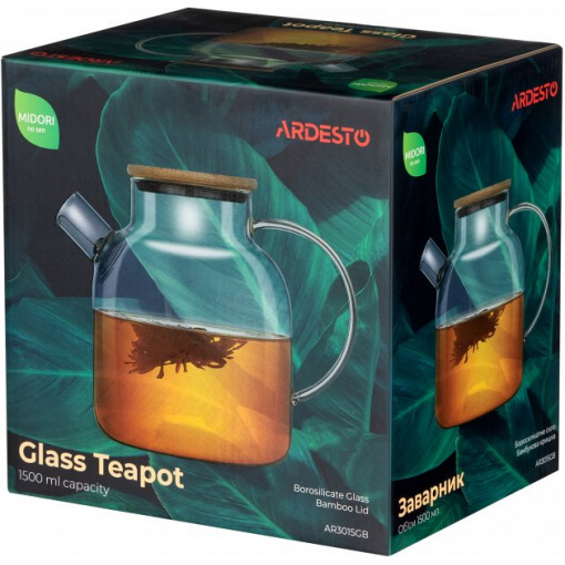 Заварочный чайник 1.5 л боросиликатное стекло с бамбуковой крышкой Ardesto AR3015GB