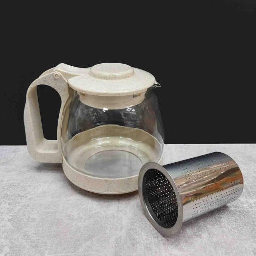 Cтеклянный заварочный чайник с сеткой. Сетка из нержавеющей стали. Стеклянный заварник очень удобен, так как ни один листок или гранула чая не попадет в вашу чашку. Чайник снабжен коротким носиком.