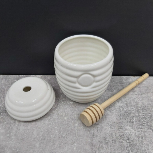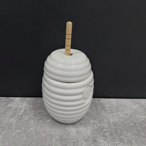 Банка для меду Interos порцелянова PJ00911 з дерев'яною ложкою 250 мл