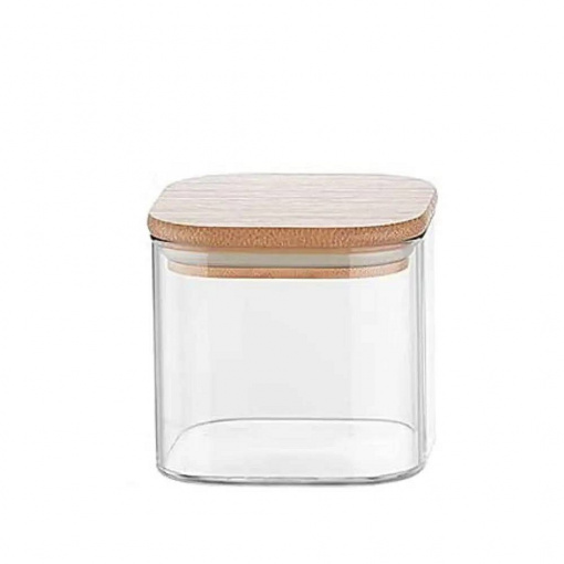 Банка скляна квадратна з бамбуковою кришкою 600 мл S&T 7029-08