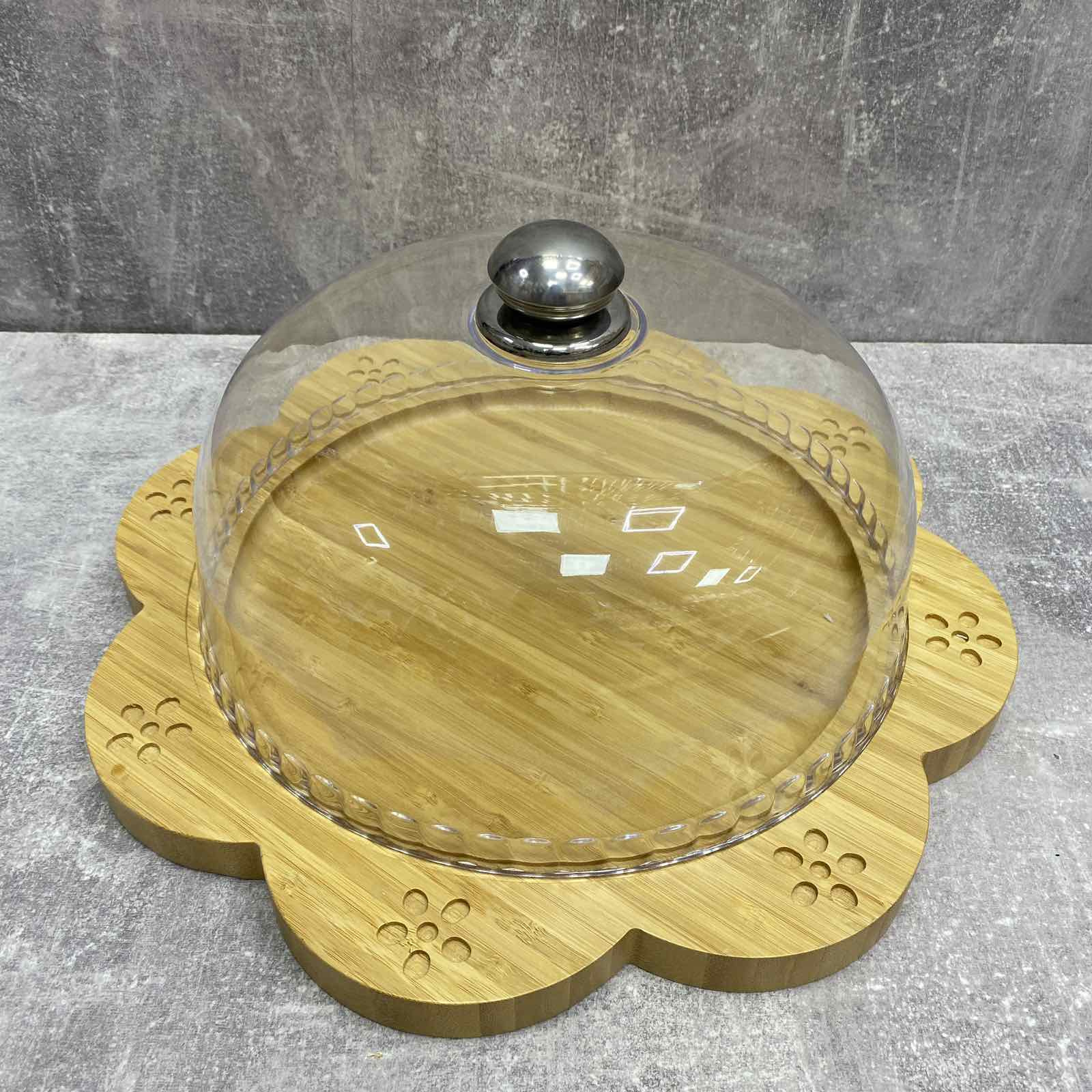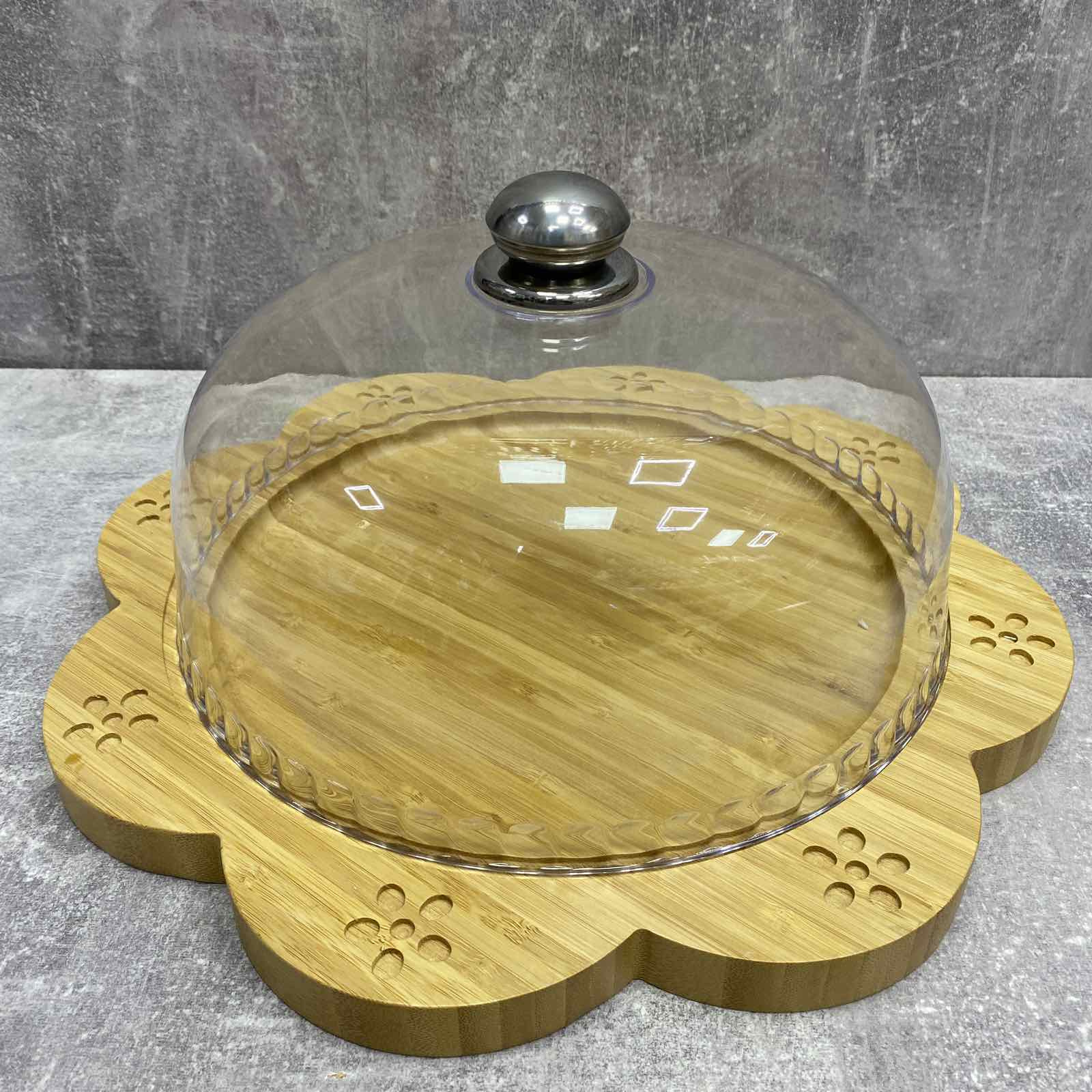 Детальні характеристики Блюдо для торта бамбукова з пластиковою кришкою Interos PJ02716.