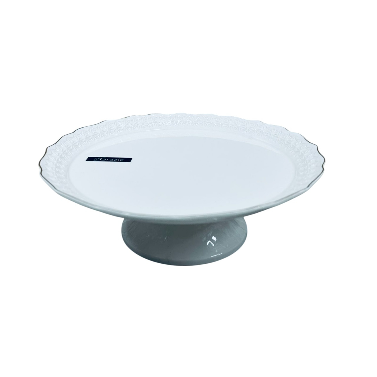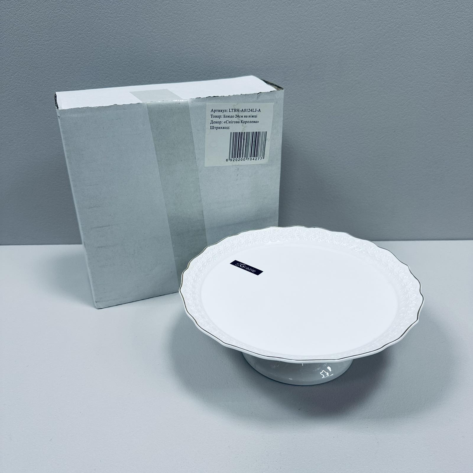 Блюдо на ніжці порцелянове Interos 0124-А Снігова королева 23,3х9 см Білий (23655)