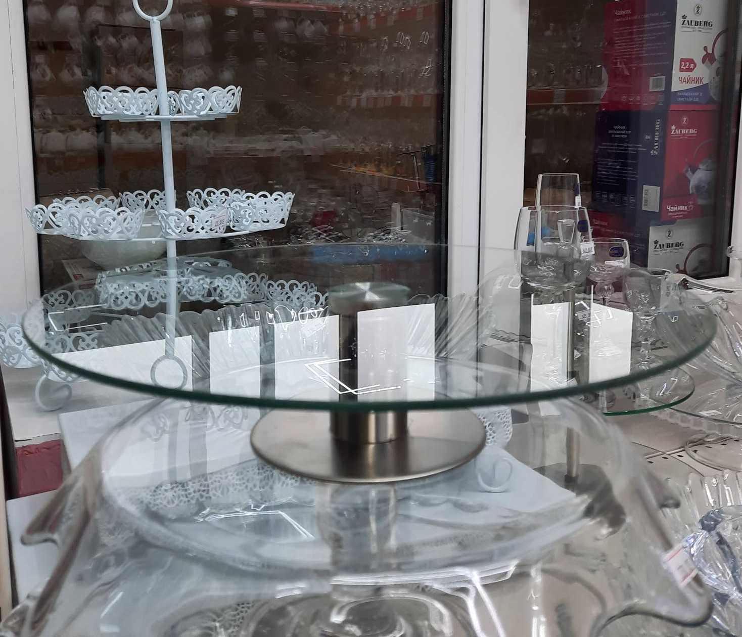 Блюдо-підставка поворотна d-30 см скляна на ніжці для кенді барів A-PLUS 1818