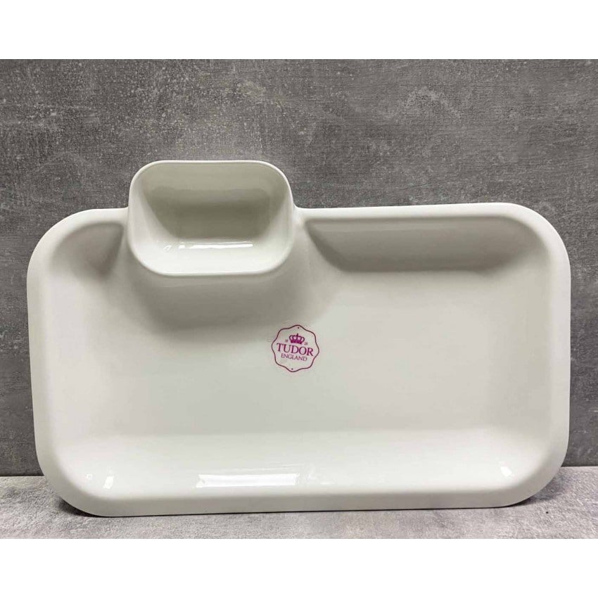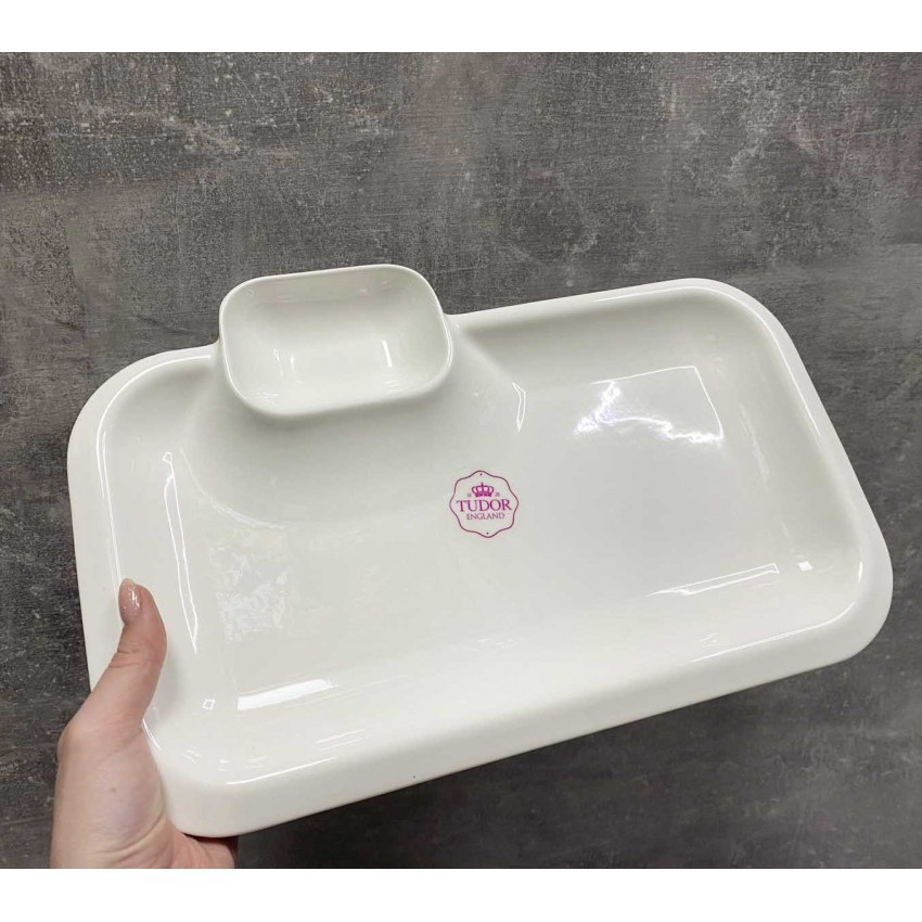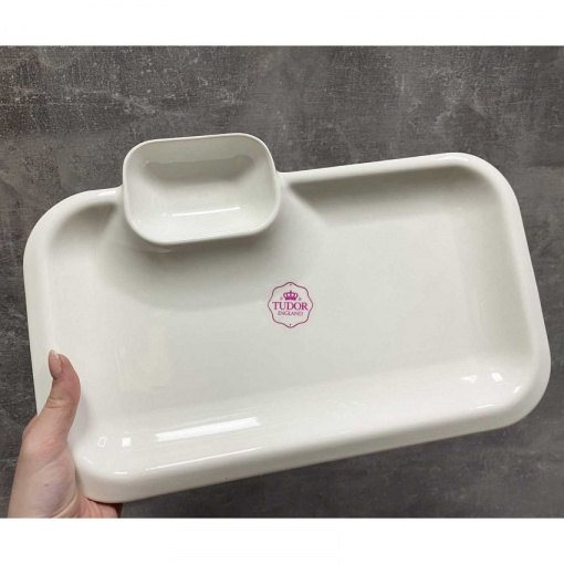 Блюдо прямокутне з соусником Tudor TU0265-2 гладке порцелянове 25 см