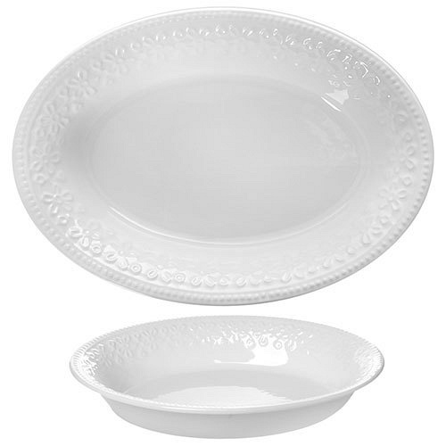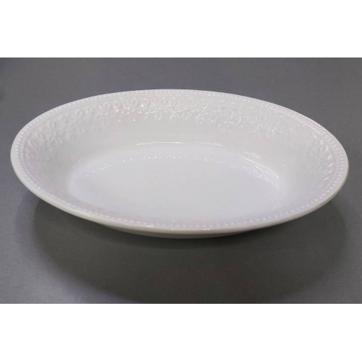 Керамічна овальна страва чудово підійде як для подачі гарячих шматкових страв, так і для фруктів або десертів. > Довжина : 32 см Висота: 7 см Ширина: 22 см