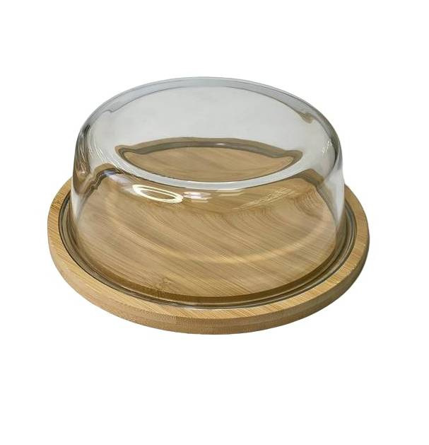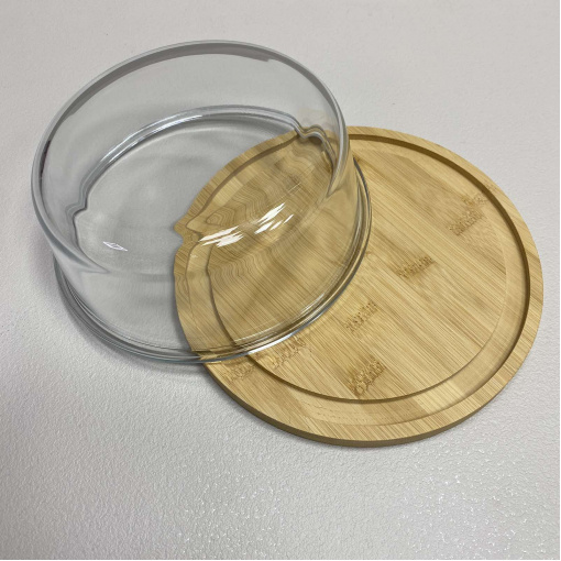 Блюдо-сирниця бамбукове зі скляною кришкою 21х21х7,8 см OLens O102-627