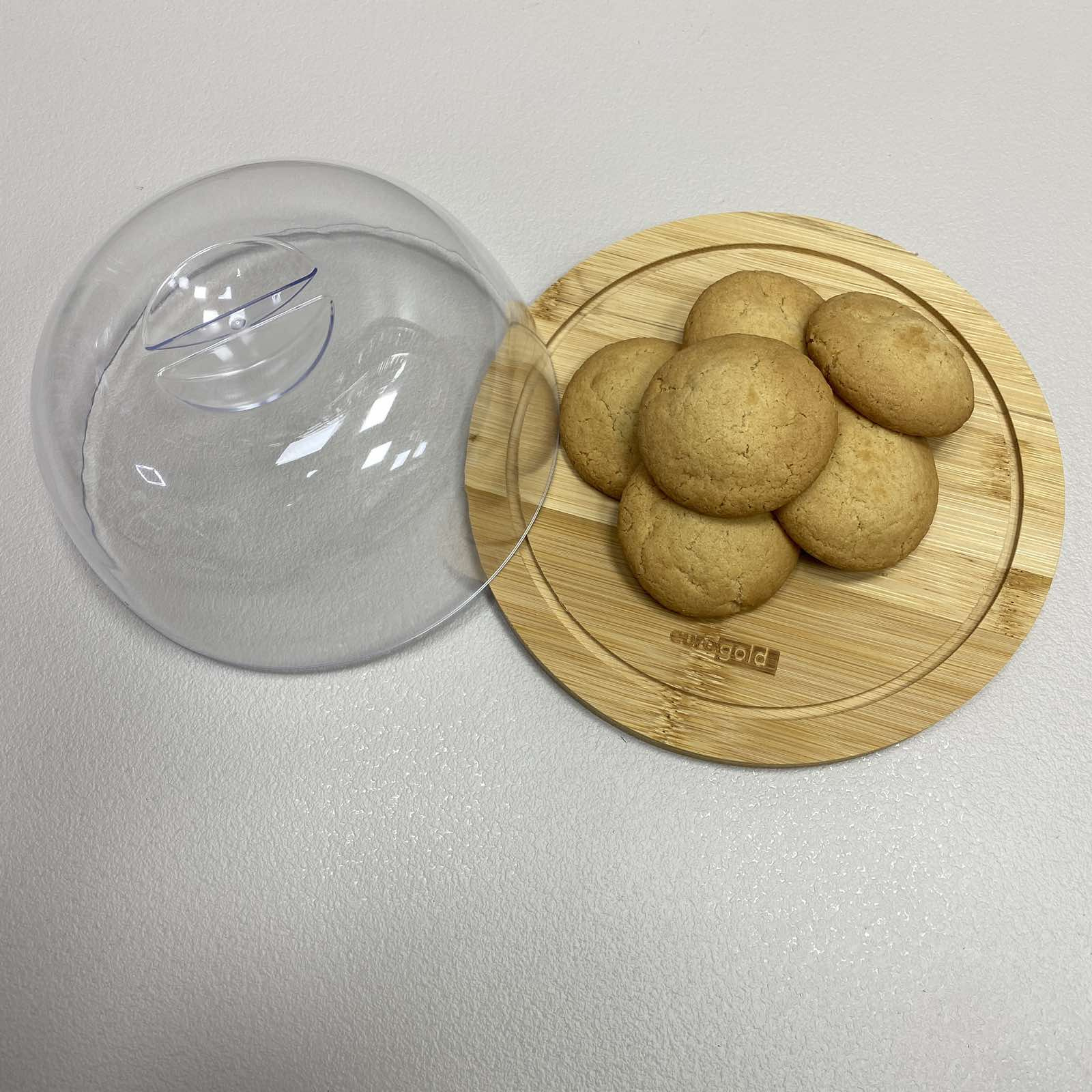 Блюдо-сирниця бамбукова з акриловою кришкою 19,5*19,5*8 см Eurogold 7016102487 Страва-сировина Eurogold виготовлена ​​з натурального дерева бамбука, який робить дизайн боксу цікавішим. Якісний та практичний контейнер відмінно підійде для збереження свіжості продуктів, розігріву та приготування їжі. Характеристика: Вид: Блюдо-сирниця Матеріал підставки: Бамбук Матеріал кришки: Акрил Розмір: 19,5*19,5*8 см Форма: Кругла Призначення: Для печива, зефіру, цукерок