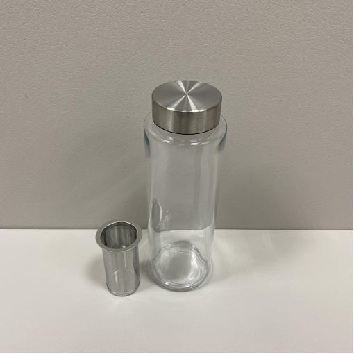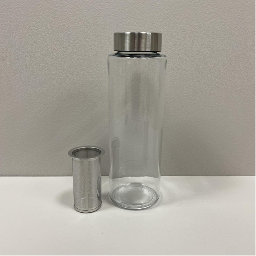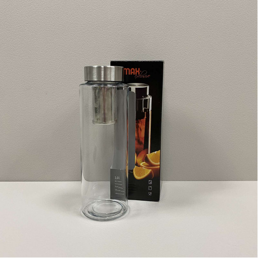 Пляшка для води з металевою кришкою та ситечком 1 л Pure Aqua Bottle Simax s10120/МЕТ Характеристика: Вид: Пляшка Призначення: Для води Матеріал: Скло Матеріал кришки: Метал Об'єм: 1 л Висота: 25,5 см Діаметр: 5,7 см, дна - 8 см Колір: Прозорий