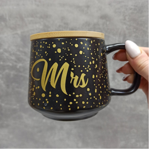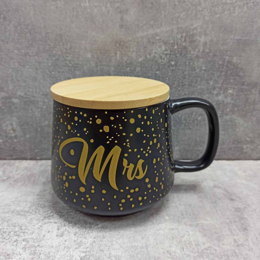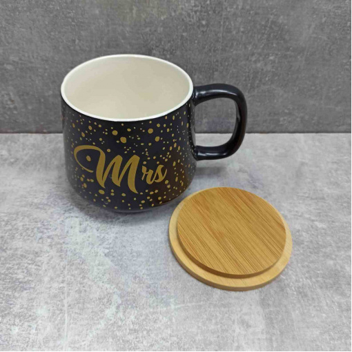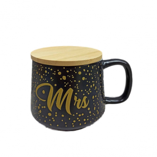 Чашка чорна з бамбуковою кришкою "Місіс" 400мл 20634