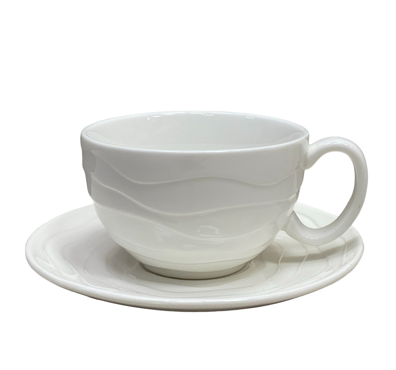 Чашка з блюдцем порцелянова Хвиля 220 мл BonaDi 988-437 Характеристика: Вид: Чашка з блюдцем Матеріал: Фарфор Об'єм: 220 мл Колір: Білий Діаметр: блюдця – 14,5 см Розмір: чашки – d – 9,8 см, h – 5 9 см.
