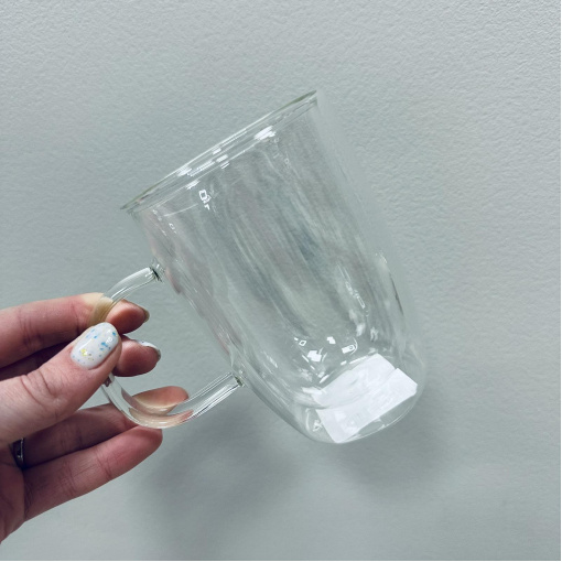 Характеристики: Тип: Чашка Колір: Прозорий Матеріал: Скло Об'єм: 370 мл Висота: 11,5 см Діаметр: 8,4 см Призначення: Для гарячих напоїв, для холодних напоїв Країна-виробник товару: Китай
