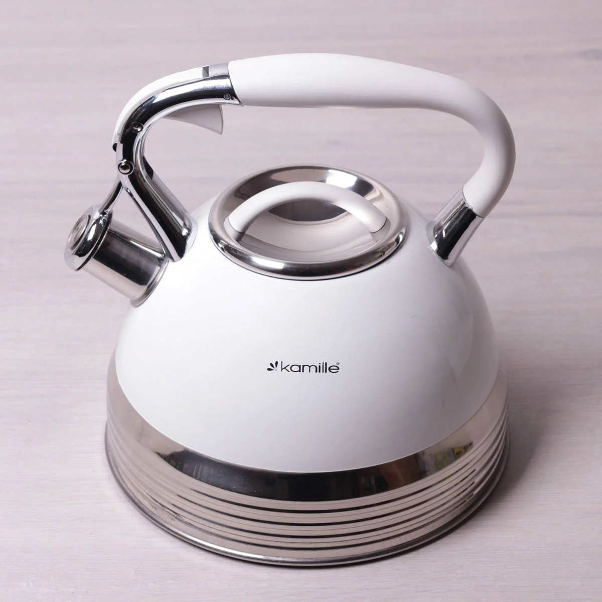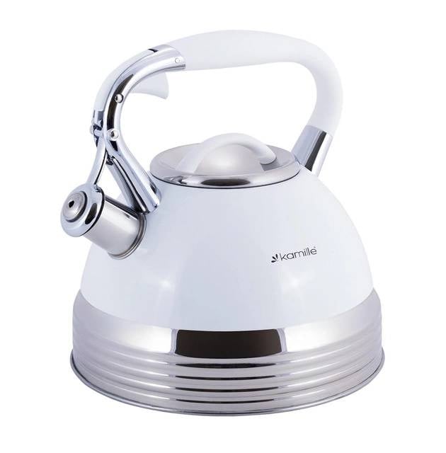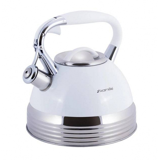 Чайник 2,7 л Kamille із нержавіючої сталі зі свистком та ручкою з покриттям "soft-touch" білий КМ-0696AN