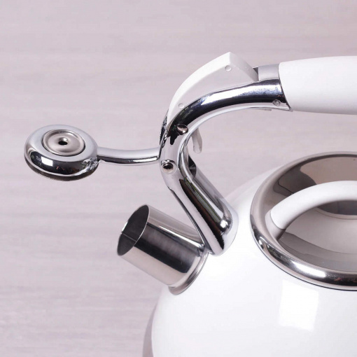 Чайник 2,7 л Kamille із нержавіючої сталі зі свистком та ручкою з покриттям soft-touch білий КМ-0696AN