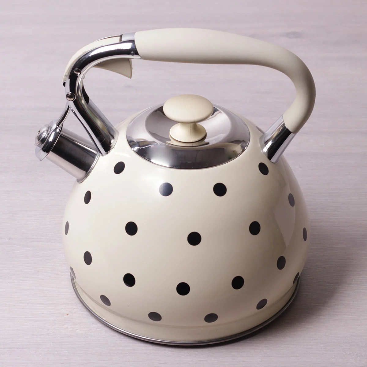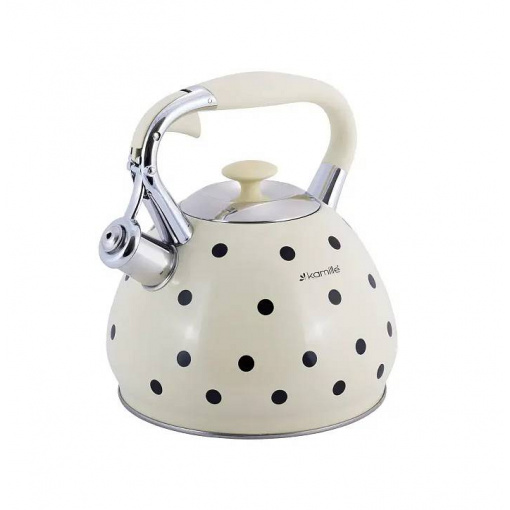 Чайник 3 л Kamille із нержавіючої сталі зі свистком та ручкою з покриттям "soft-touch" бежевий КМ-0695AN