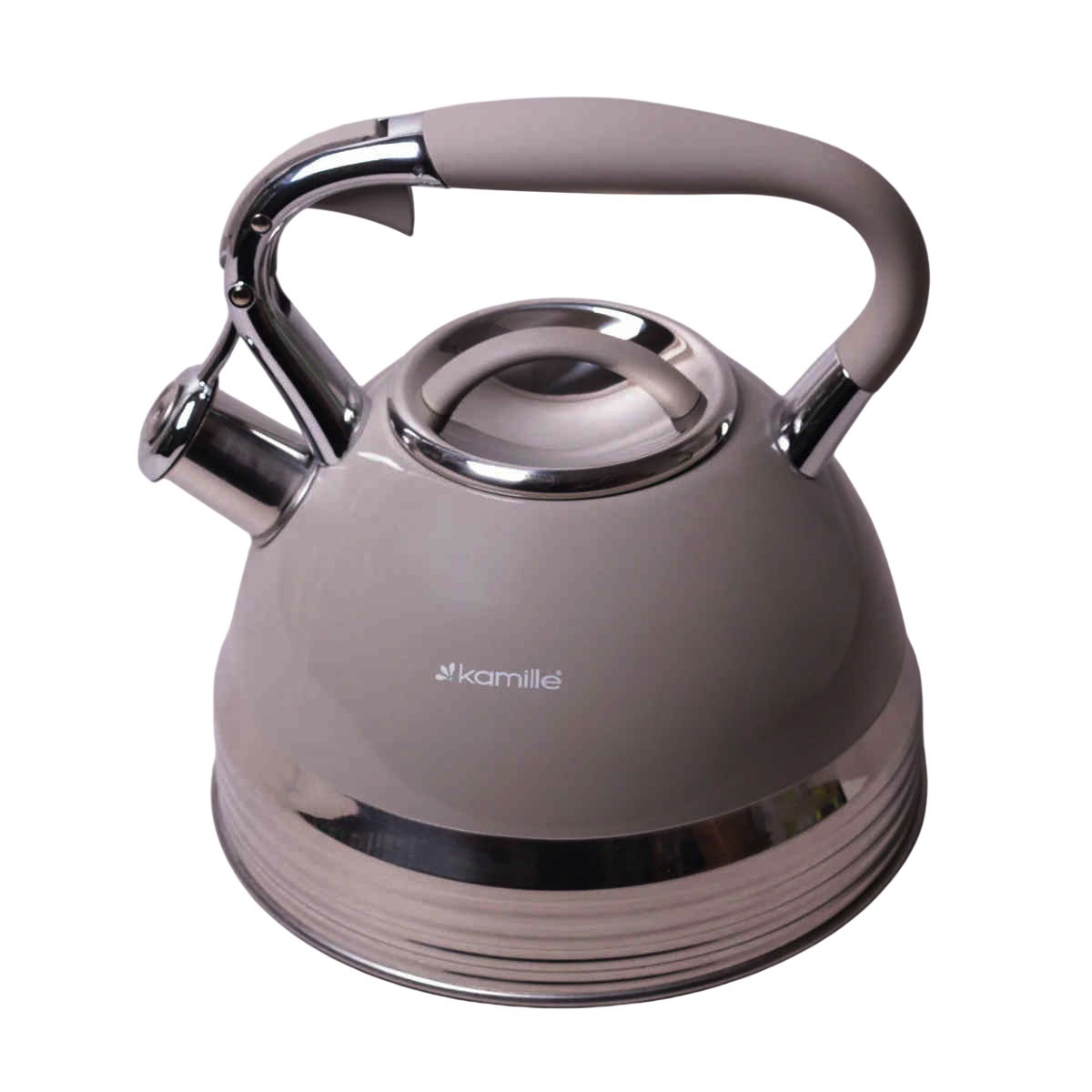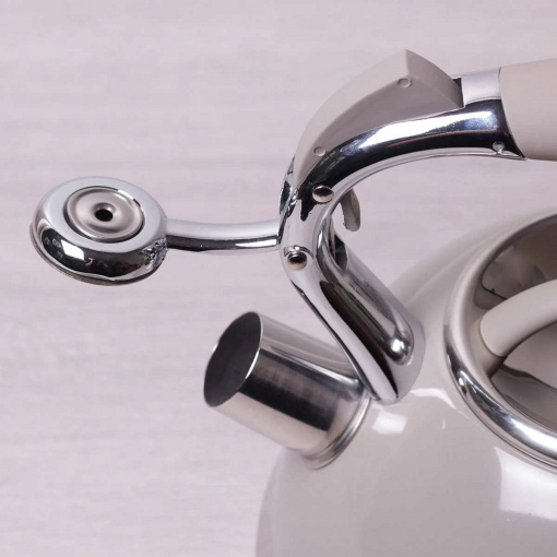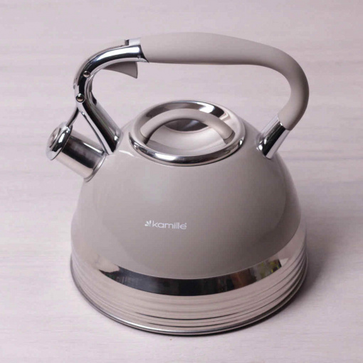 Чайник 2,7 л Kamille із нержавіючої сталі зі свистком та ручкою з покриттям "soft-touch" бежевий КМ-0696AN